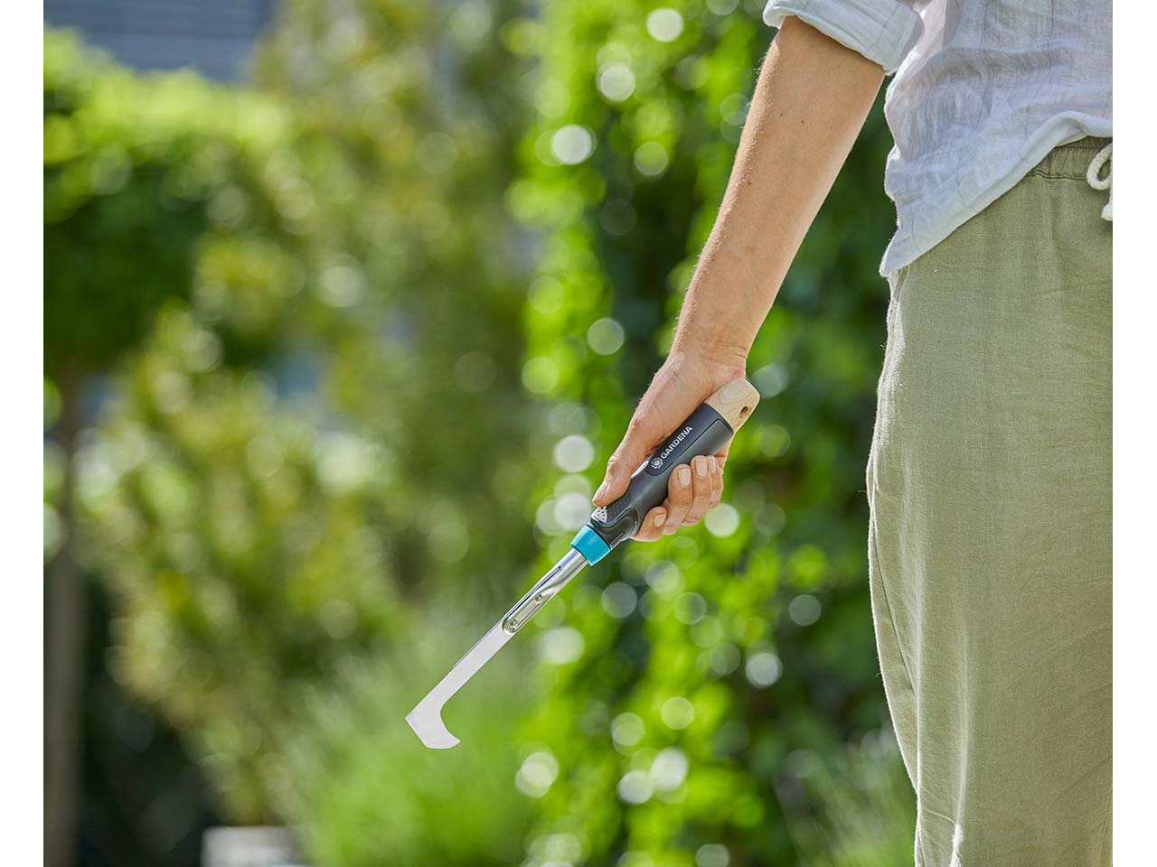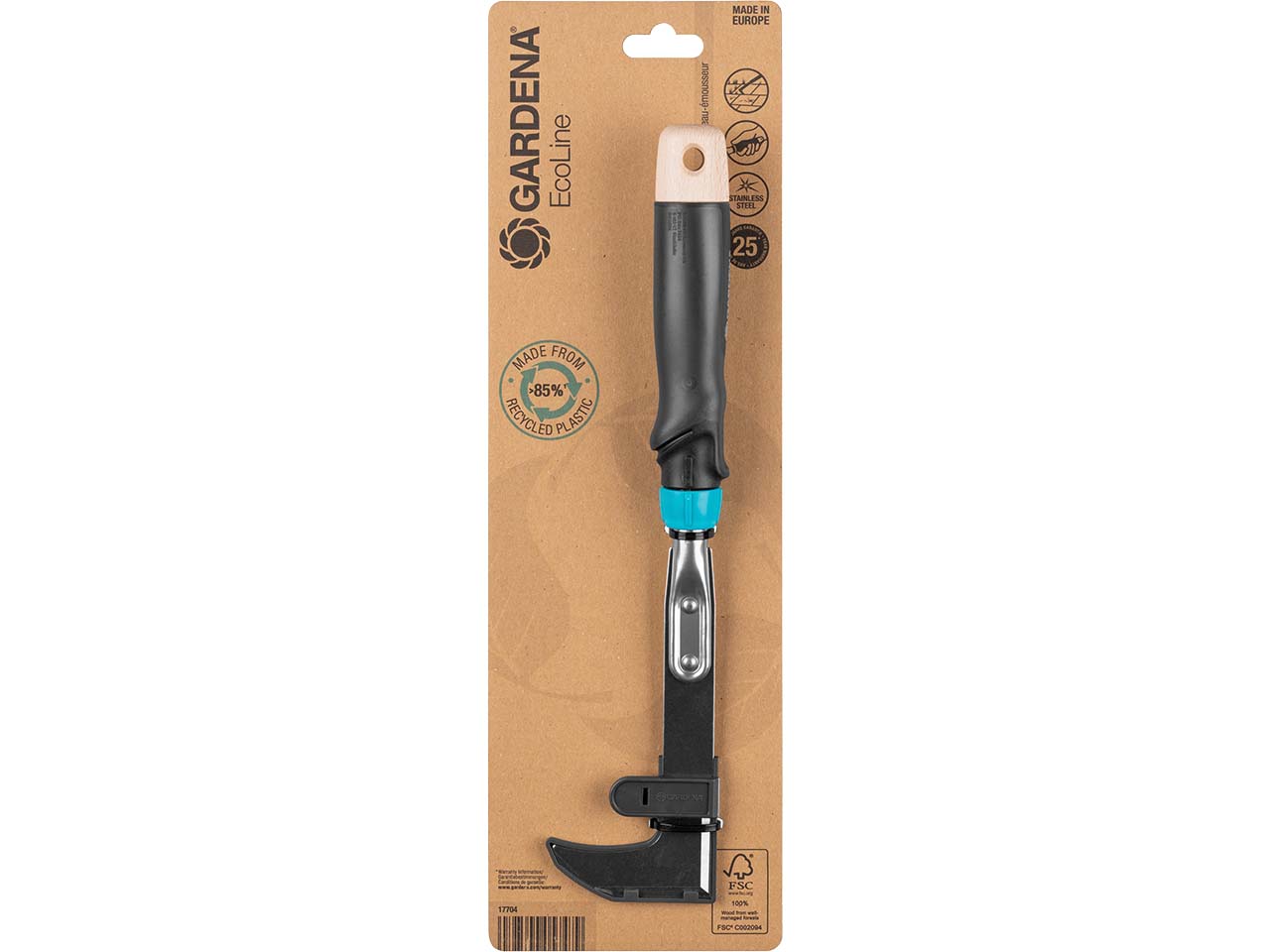 Fugen in der Einfahrt oder auf der Terrasse zu reinigen, wird mit diesem Gartenhelfer ganz einfach. Er entfernt Moos und Unkraut effektiv. Der Fugenkratzer für enge Plattenfugen, Mauerkante, Vorgarten oder zwischen Pflastersteinen ist mit einem beidseitig geschliffenen Messer aus Edelstahl versehen. Das Gartengerät hat einen ergonomisch geformten Griff, der die Gartenarbeit erleichtert. Das ansprechende, langlebige Design wird durch das elegante Holzelement am Griff komplettiert. Ein Großteil der Kunststoffkomponenten besteht aus Recyclingmaterial aus Post-Consumer-Quellen. Auch die Metallelemente enthalten zu mehr als 45 % recyceltes Material.