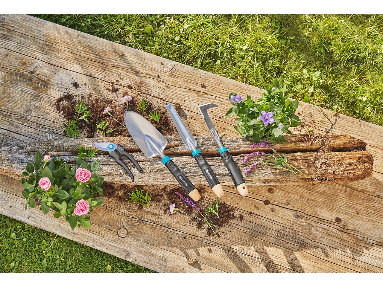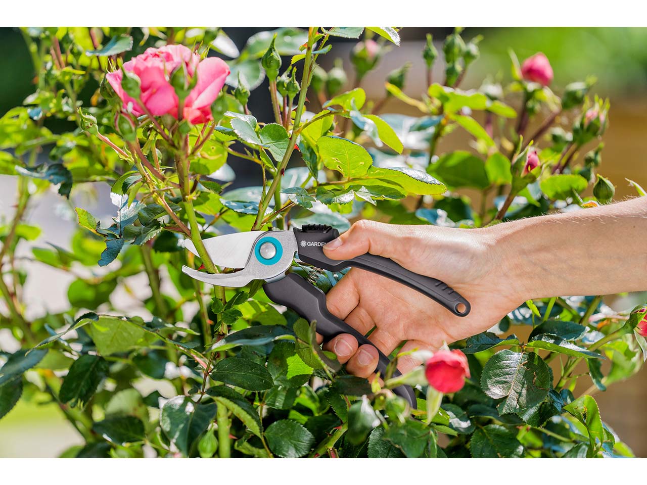 - Gartenschere zum präzisen Schneiden von Blumen und jungen Pflanzentrieben