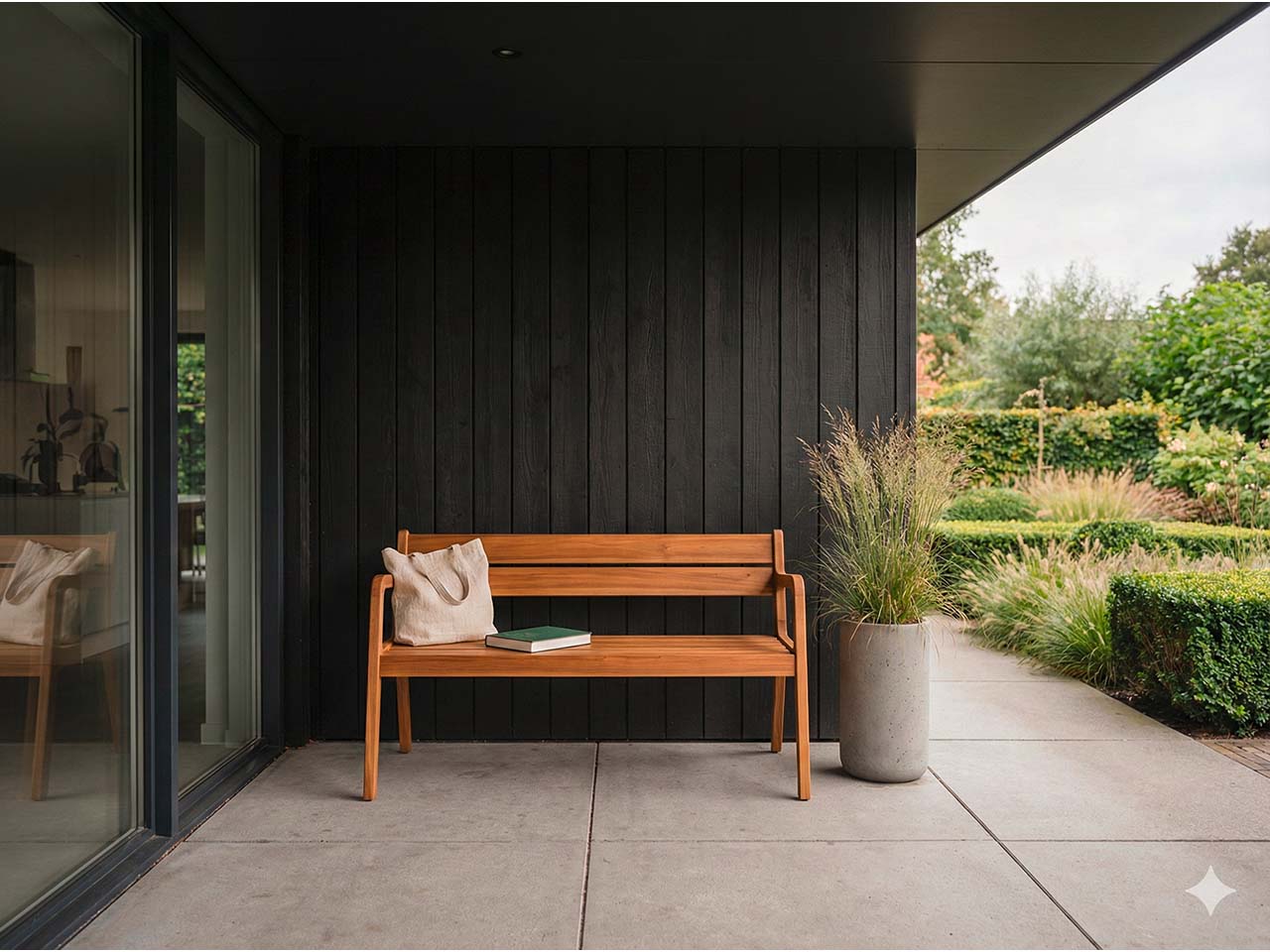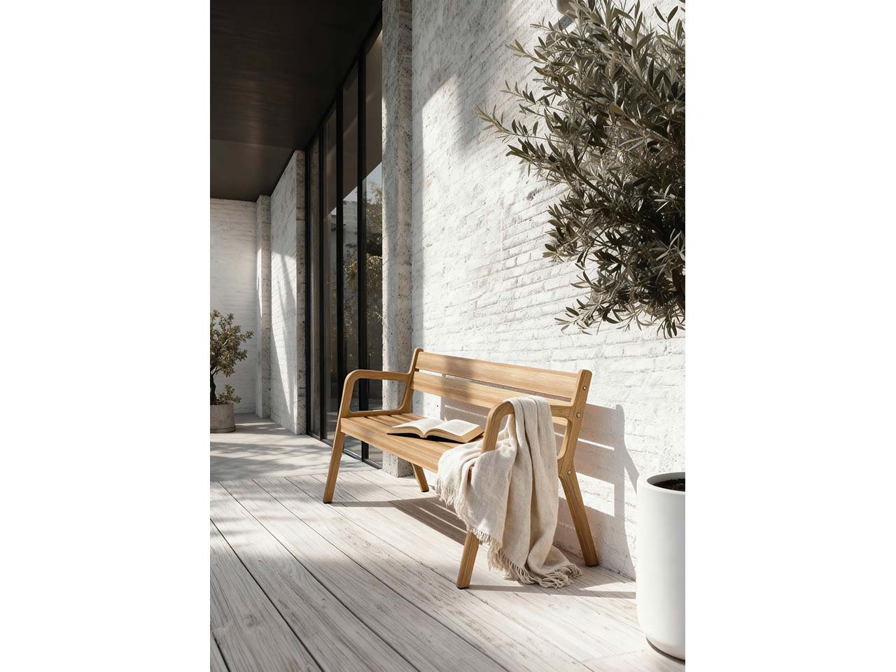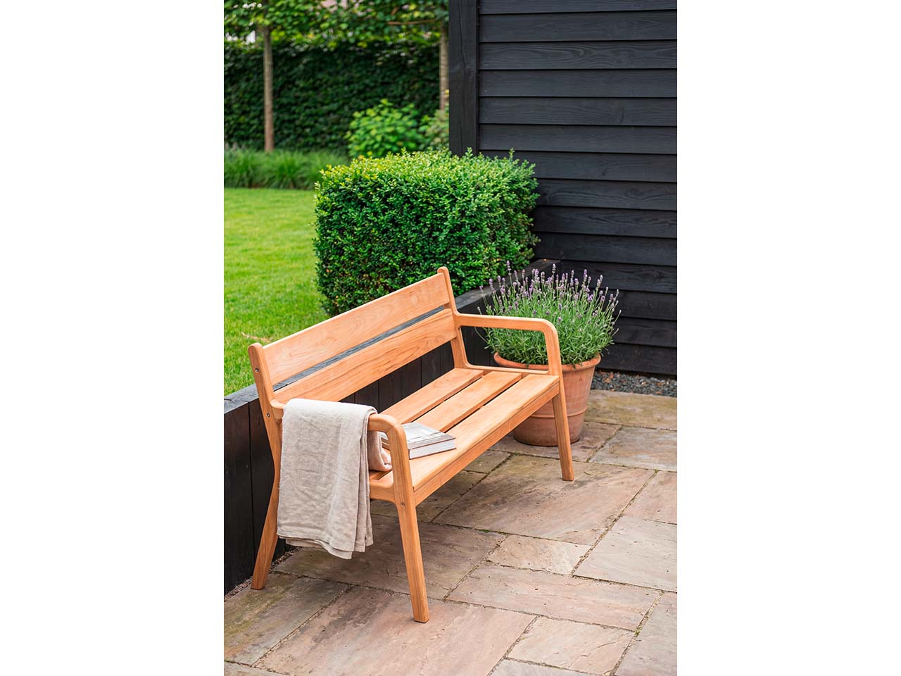 Großzügige Sitzbank mit Arm- und Rückenlehne