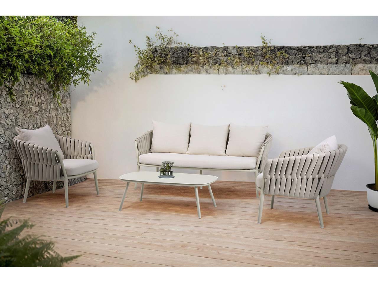Modernes Lounge-Set mit Tisch, Sofa und Sesseln