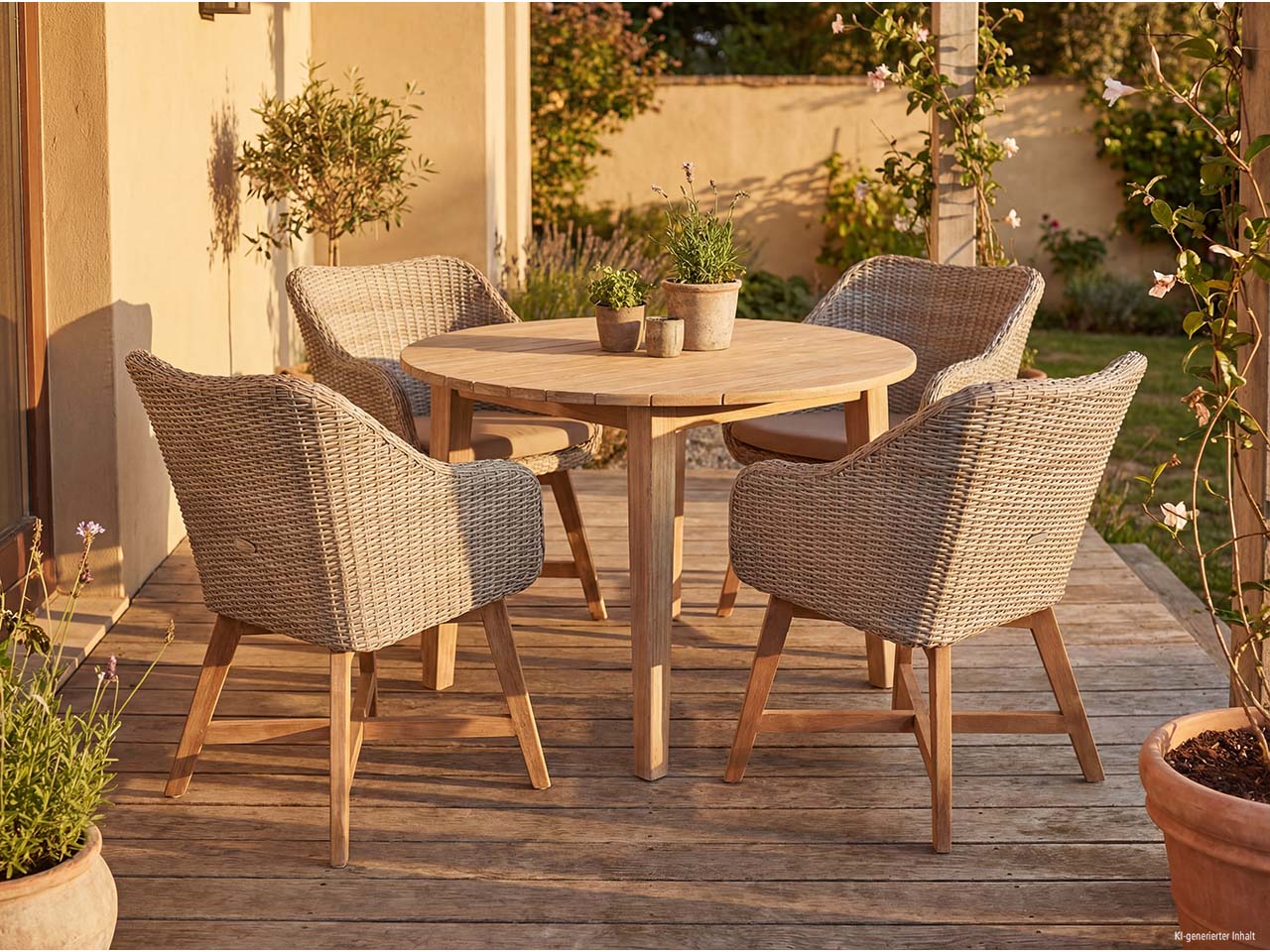 - 5-teiliges Set mit rundem Tisch und Gartensesseln