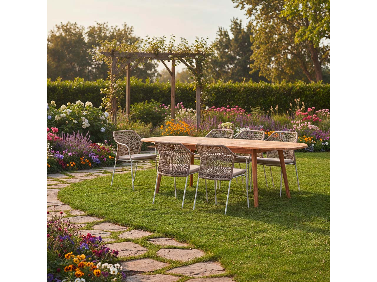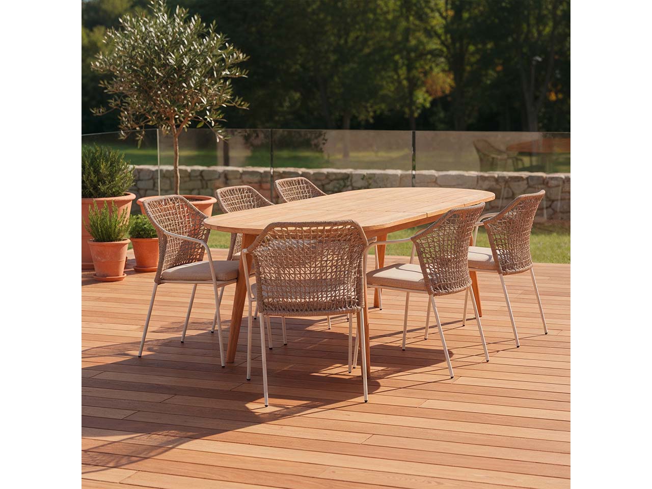 6 Gartenstühle im Set mit stilvollem Ausziehtisch