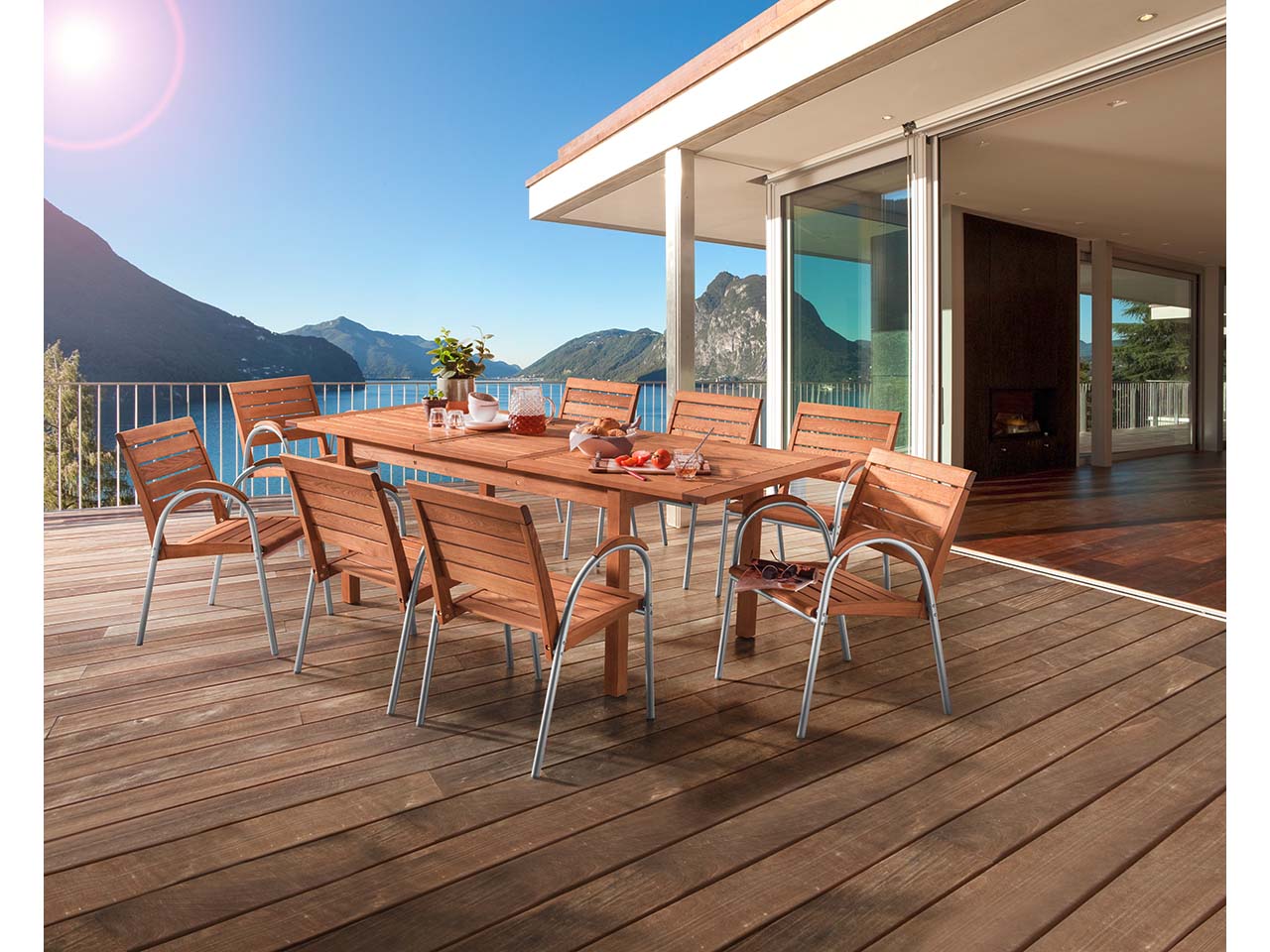 Zudem sind die Gartenmöbel besonders langlebig, da das europäische Robinienholz nicht nur äußerst robust, sondern dank der speziellen Lasur auch resistent gegen Fäulnis und Pilzbefall ist. Somit kann es unbehandelt das ganze Jahr über draußen bleiben und man kann sich besonders lange daran erfreuen. Später lassen sich Holz und Aluminiumgestell sortenrein recyceln.