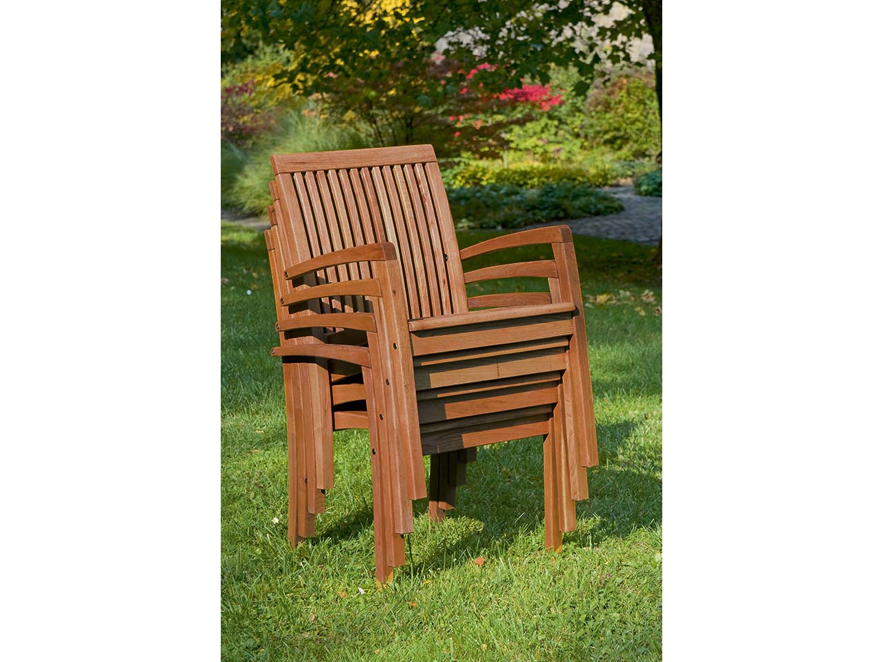 Gartenmöbel der Serie "Enya" überzeugen durch Hochwertigkeit und Ergonomie. Der Gartensessel aus FSC-zertifiziertem Robinienholz ist sorgfältig verarbeitet, wetterfest und somit besonders langlebig. Alle Metallteile sind aus rostfreiem Stahl. Einfach stapelbar. B 58 x T 58,5 x H 89 cm. Sitzhöhe 42 cm.