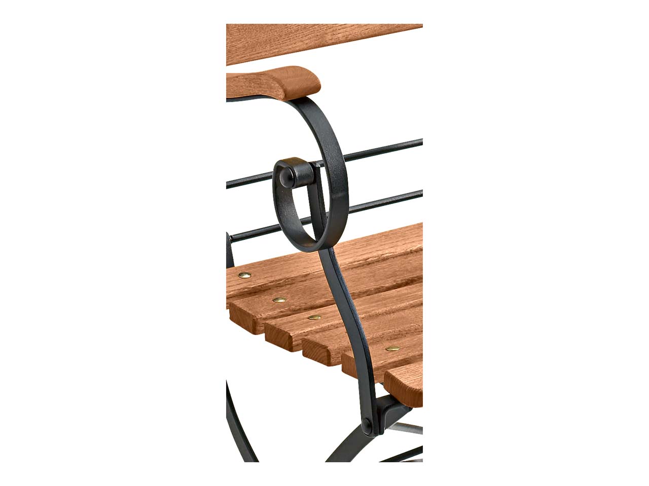Filigran und doch massiv: Der Gartenstuhl "Maja" mit Armlehnen wird aus robuster Robinie und stabilen Metallteilen gefertigt. Der Gartenstuhl ist klappbar und so platzsparend zu verstauen. Hochwertige Verarbeitung und stabile Konstruktion mit rostfreien Metall- und Beschlagteile. Hergestellt in Europa. B 57 x T 60 x H 87 cm, Sitzhöhe 45 cm.