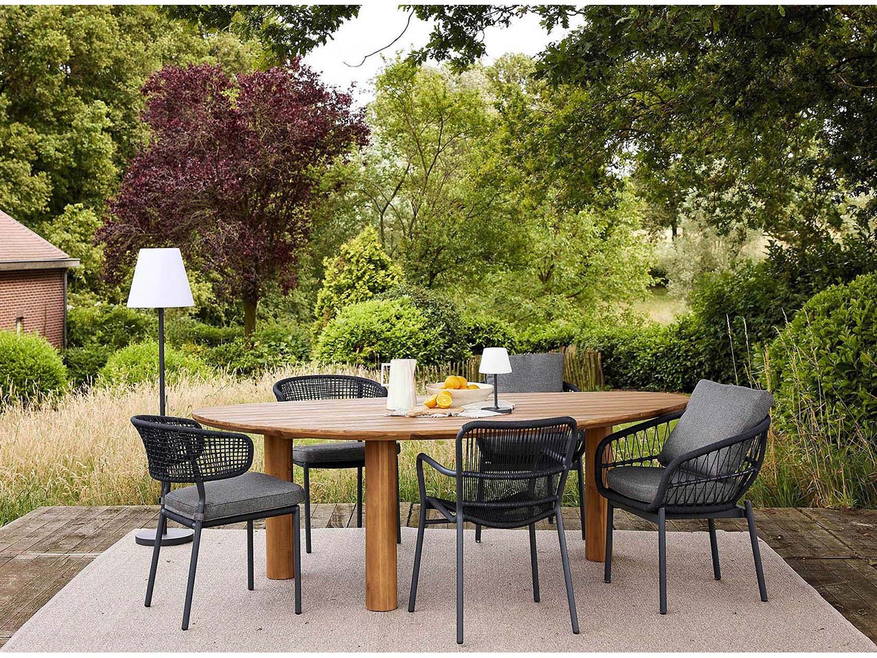 In diesem Gartensessel kann man es sich gemütlich machen. Mit seinem raffinierten Design und dem Seilgeflecht an Sitzfläche und Rückenlehne bringt er Stil auf die Terrasse oder in den Garten. Die passenden Kissen sorgen jederzeit für höchsten Sitzkomfort. Dank strapazierfähigem Gestell aus Aluminium bereitet der Gartensessel über viele Jahre Freude.