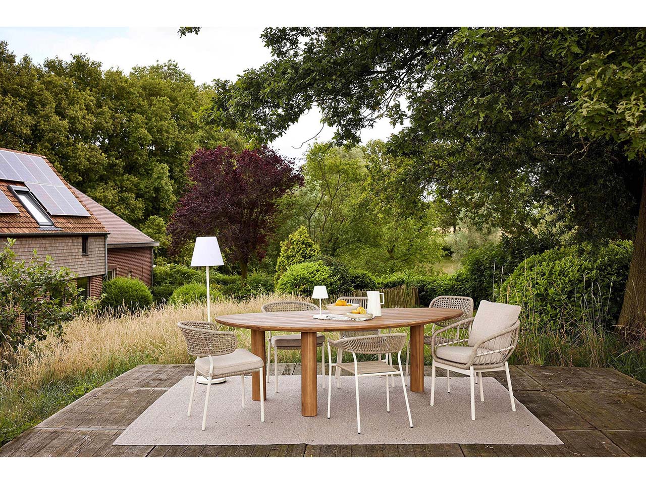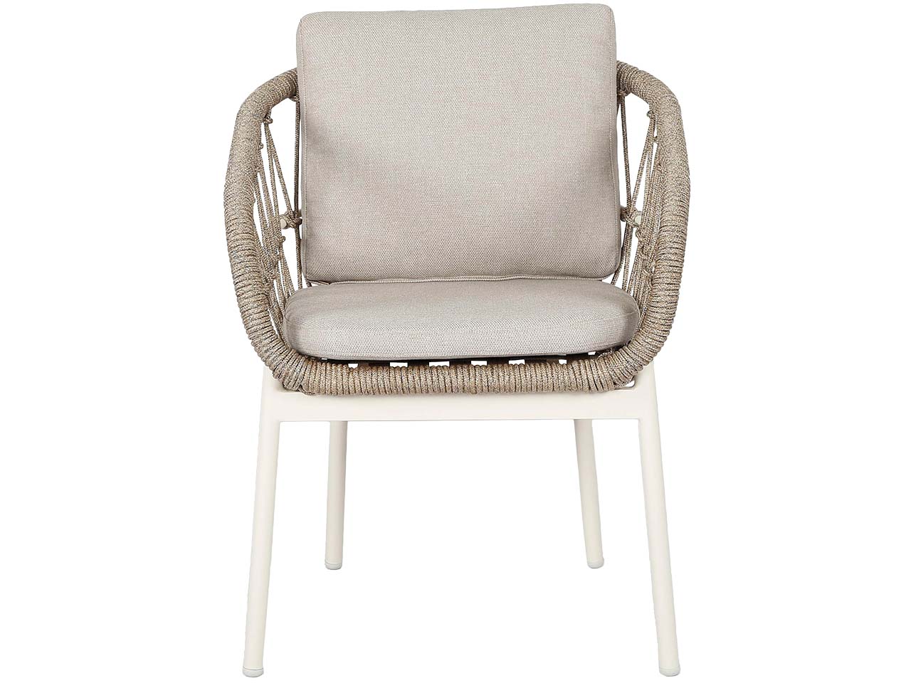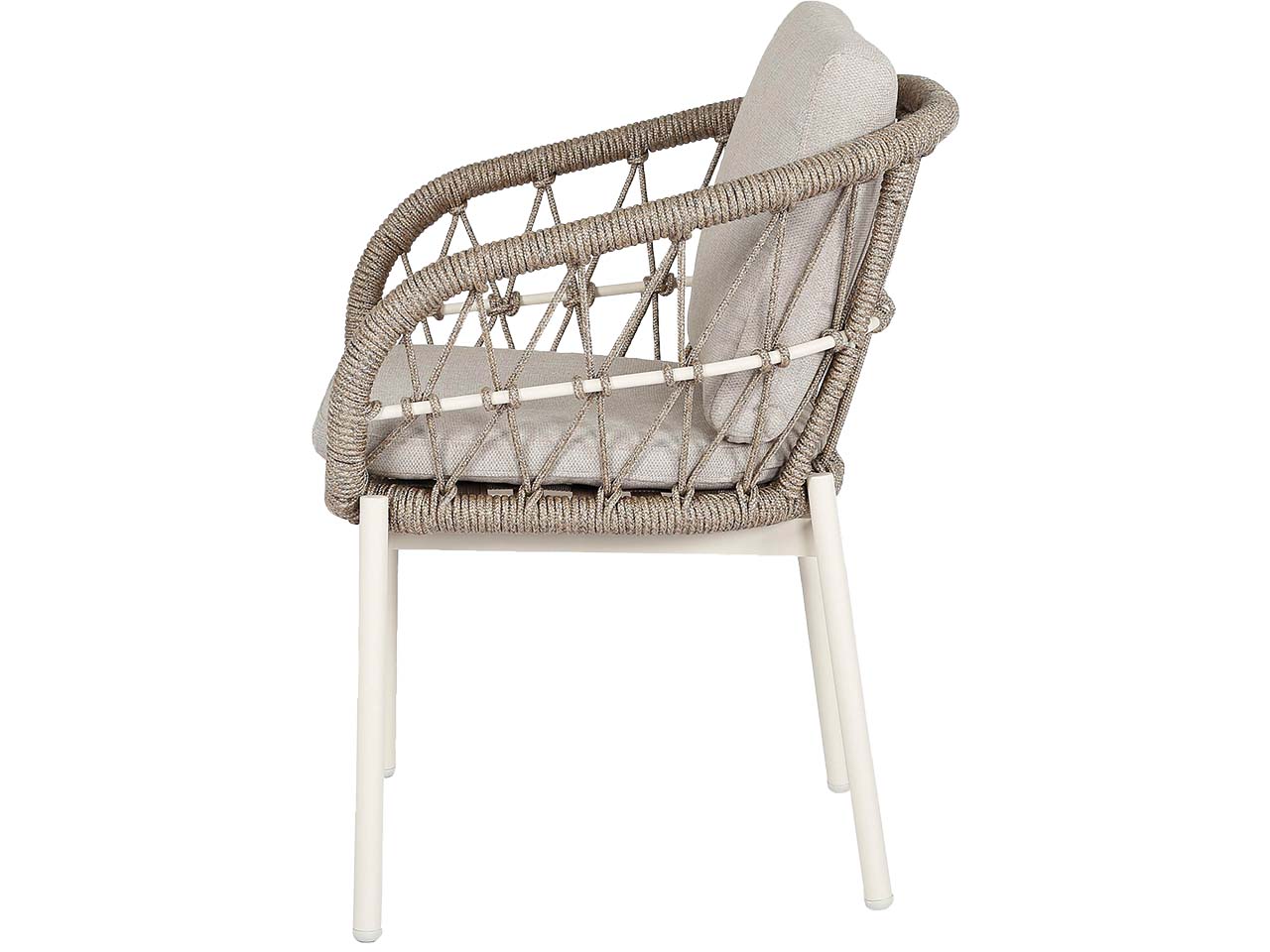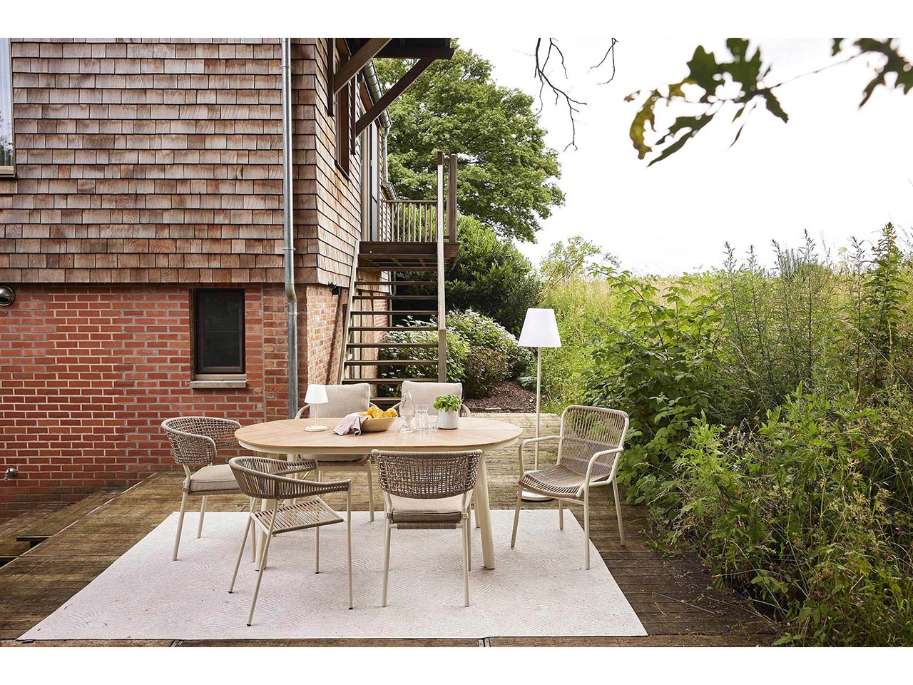In diesem Gartensessel kann man es sich gemütlich machen. Mit seinem raffinierten Design und dem Seilgeflecht an Sitzfläche und Rückenlehne bringt er Stil auf die Terrasse oder in den Garten. Die passenden Kissen sorgen jederzeit für höchsten Sitzkomfort. Dank strapazierfähigem Gestell aus Aluminium bereitet der Gartensessel über viele Jahre Freude.
