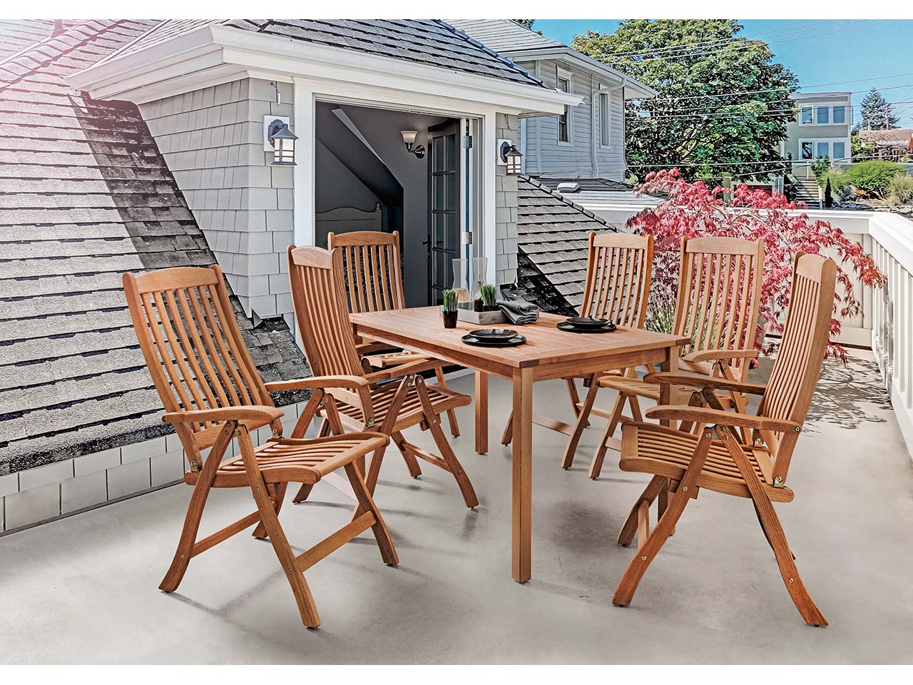 Der Gartentisch ist aus FSC-zertifiziertem Robinienholz in Europa hergestellt.