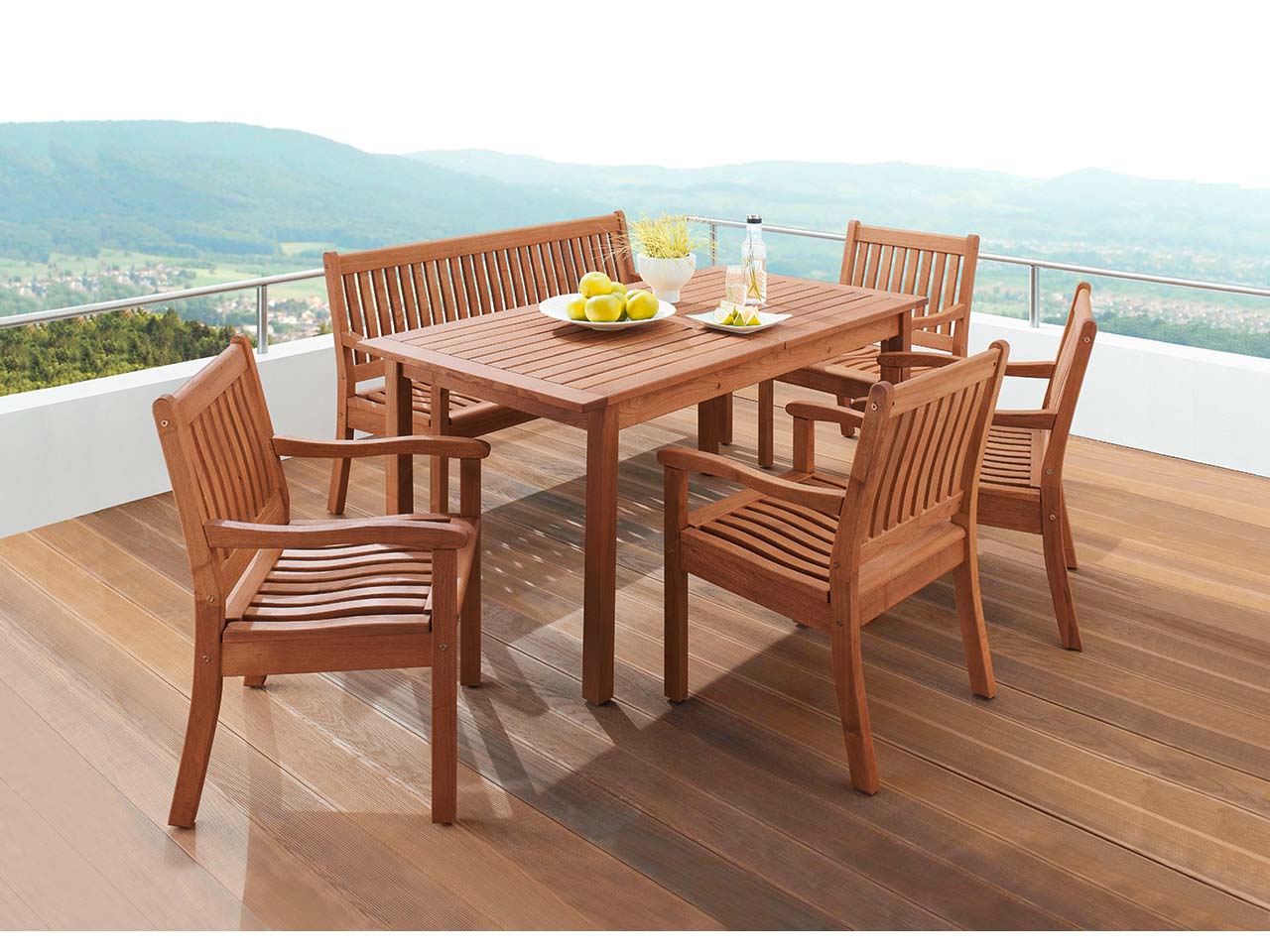 Der Gartentisch wird aus massiver, wetterfester, europäischer Robinie aus vorbildlicher Forstwirtschaft (FSC-zertifiziert) hergestellt und überzeugt durch beste Qualität. Als gemeinnützige Organisation setzt sich der Forest Stewardship Council (FSC) weltweit dafür ein, dass eine ökologische und sozialverträgliche Waldbewirtschaftung stattfindet und der Raubbau unserer Wälder verhindert wird. Nur Produkte, die strenge Kriterien erfüllen und deren Rohstoffe unabhängig zertifiziert sind, erhalten das FSC-Siegel.