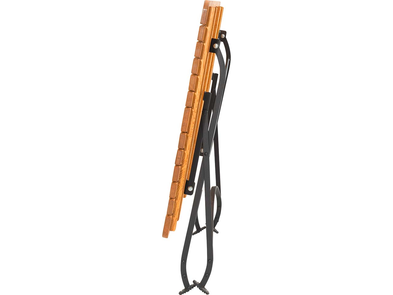 Alle Metall- und Beschlagteile sind rostfrei vollverzinkt und schwarz gepulvert, sodass ein interessanter Kontrast zur natürlichen Optik des Holzes entsteht! Der Tisch kann platzsparend verstaut werden. Ideal im Winter, wenn die Gartenmöbel im Gartenhäuschen oder -schuppen gelagert werden sollen.