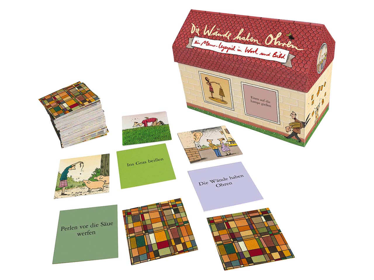 Haben Sie sich schon immer gefragt, wo Redensarten wie "aus dem Nähkästchen plaudern" herkommen? Dann ist dieses Gedächtnisspiel einfach perfekt für Sie! Die Paare des Memospiels bestehen aus einem Bild, das die Redensart wörtlich nimmt, und der Redewendung selbst. Mit einem ausführlichen Begleitbuch, das die Redewendungen erklärt. Untergebracht sind Karten und Buch in einem innovativen Haus aus Pappe.