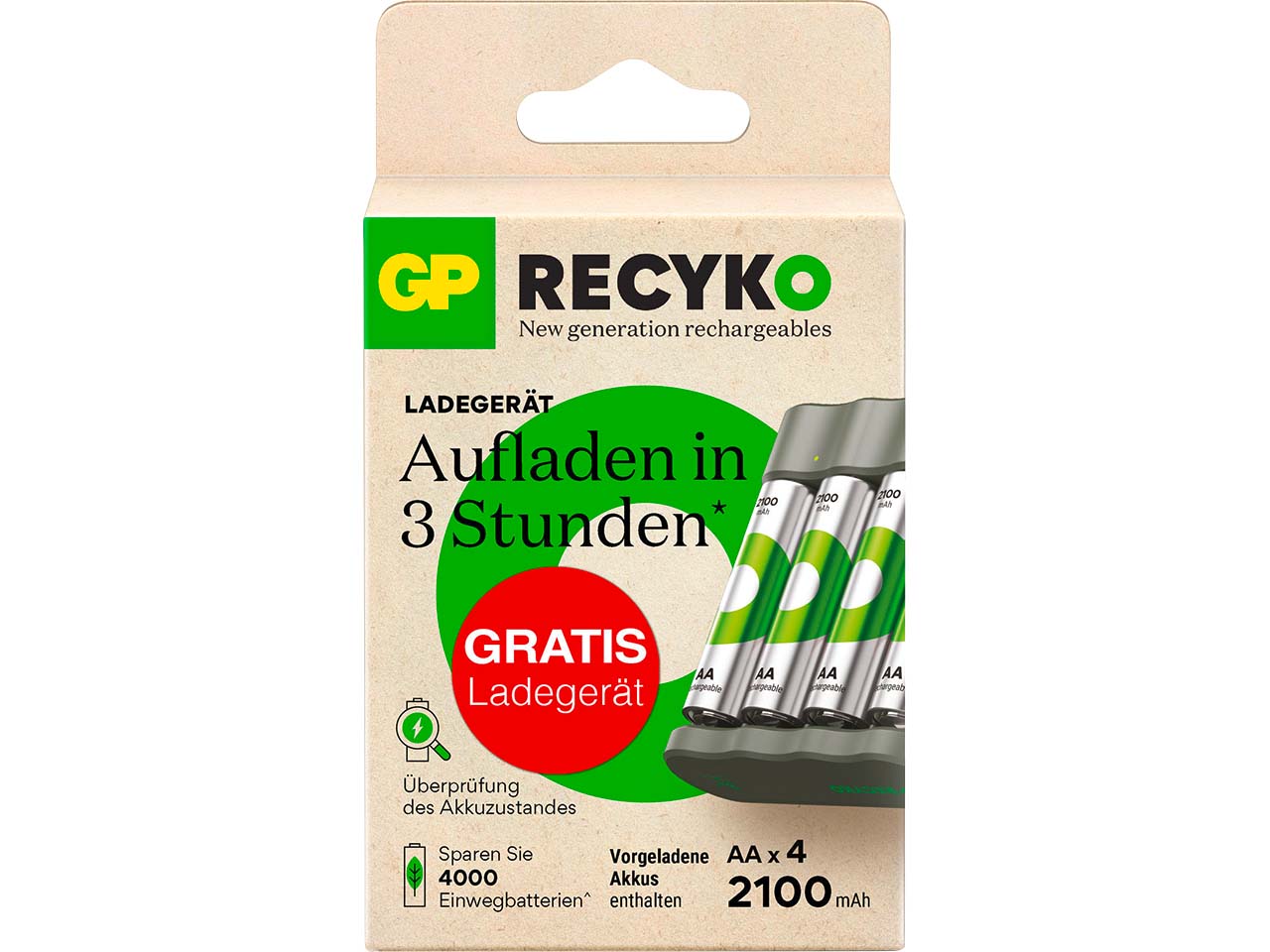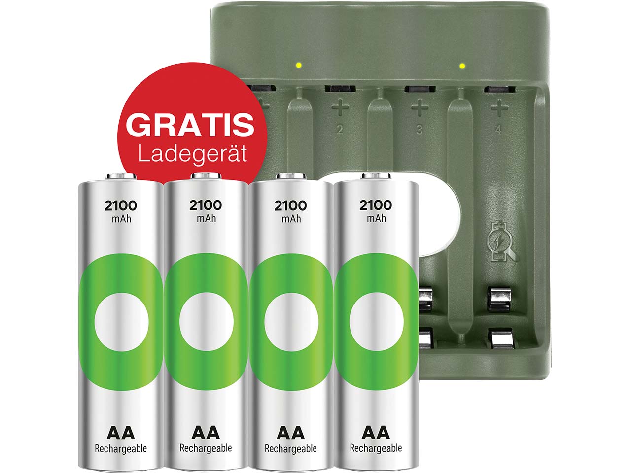4 x AA-Akkus inkl. praktischem USB-Ladegerät gratis