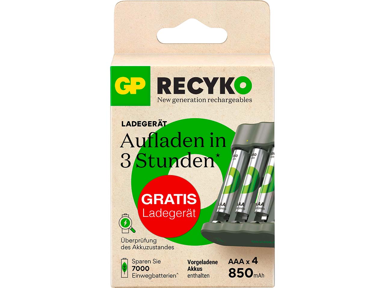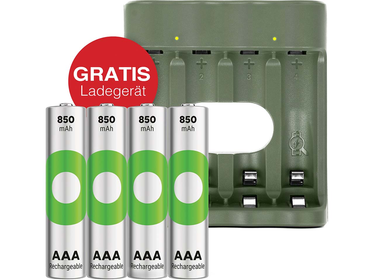 GP Battery 4 Akkus AAA 850 mAh inkl. Gratis 4-Port USB Ladegerät "B441"