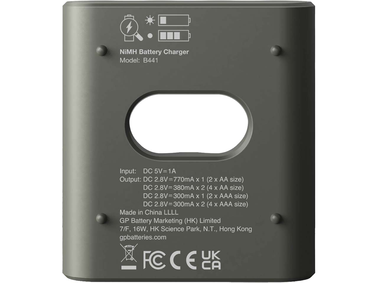 Das USB-Ladegerät ist eine kompakte 4-fach Ladeeinheit für NiMH-Akkus. Es ist mit fortschrittlichen Sicherheits- und technischen Funktionen ausgestattet und ermöglicht das gleichzeitige Laden von bis zu vier AA- oder AAA-Akkus. Das robuste Gehäuse schützt die Akkus nicht beim Laden, sondern auch unterwegs. In etwa drei Stunden lädt das Gerät vier 850 mAh AAA-Akkus über den USB-Anschluss auf. Der Ladefortschritt ist dank LED-Anzeige immer sichtbar. Die neue "Akkustatusüberprüfung" erleichtert die schnelle Ermittlung des aktuellen Ladezustands, um unvorhergesehene Ausfälle zu vermeiden und die Akkus nicht unnötig zu laden. Zu den Sicherheitsmerkmalen gehören ein automatischer Abschalttimer und -dV-Vollladungserkennung. Mit vier im Lieferumfang enthaltenen AAA 850 mAh-Akkus bietet das kompakte Ladegerät eine zuverlässige Lösung für den Alltag. B 75 x T 68 x H 21,3 mm.