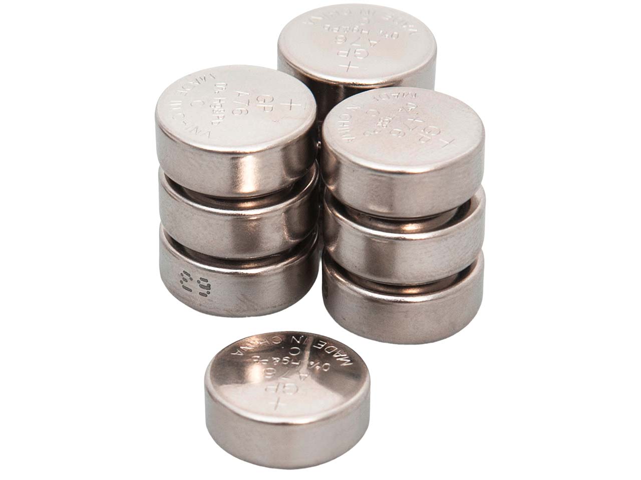 - Alkaline-Knopfzellen mit 1,5 V und 105 mAh Kapazität