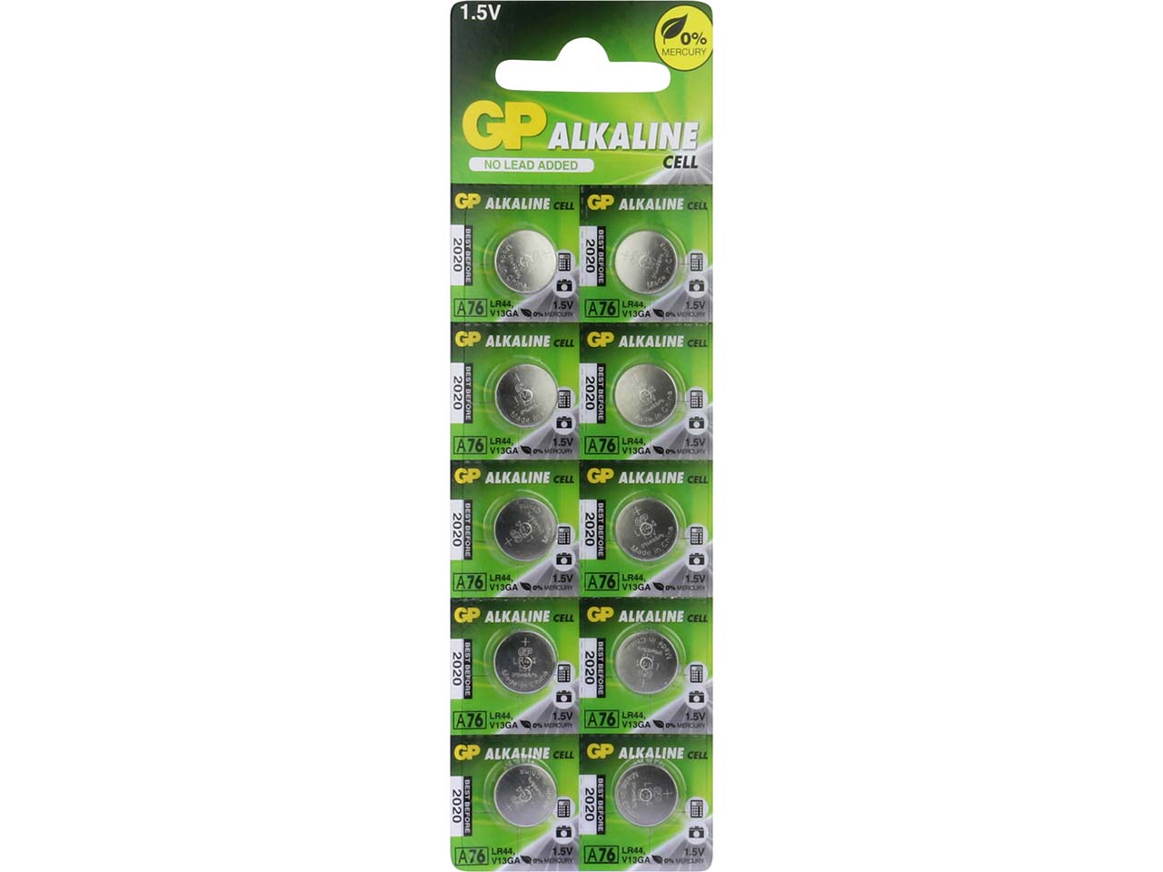 Die A76-Alkaline-Knopfzellen liefern Uhren, Weckern, Taschenrechnern oder Laserpointern die nötige Energie. Die Knopfbatterien mit 1,5 V und einer Kapazität von 105 mAh sind auslaufsicher konstruiert und frei von Quecksilber und Blei. Die Knopfzellen dienen als Ersatz für Batterien mit den Bezeichnungen LR44 und V13GA.