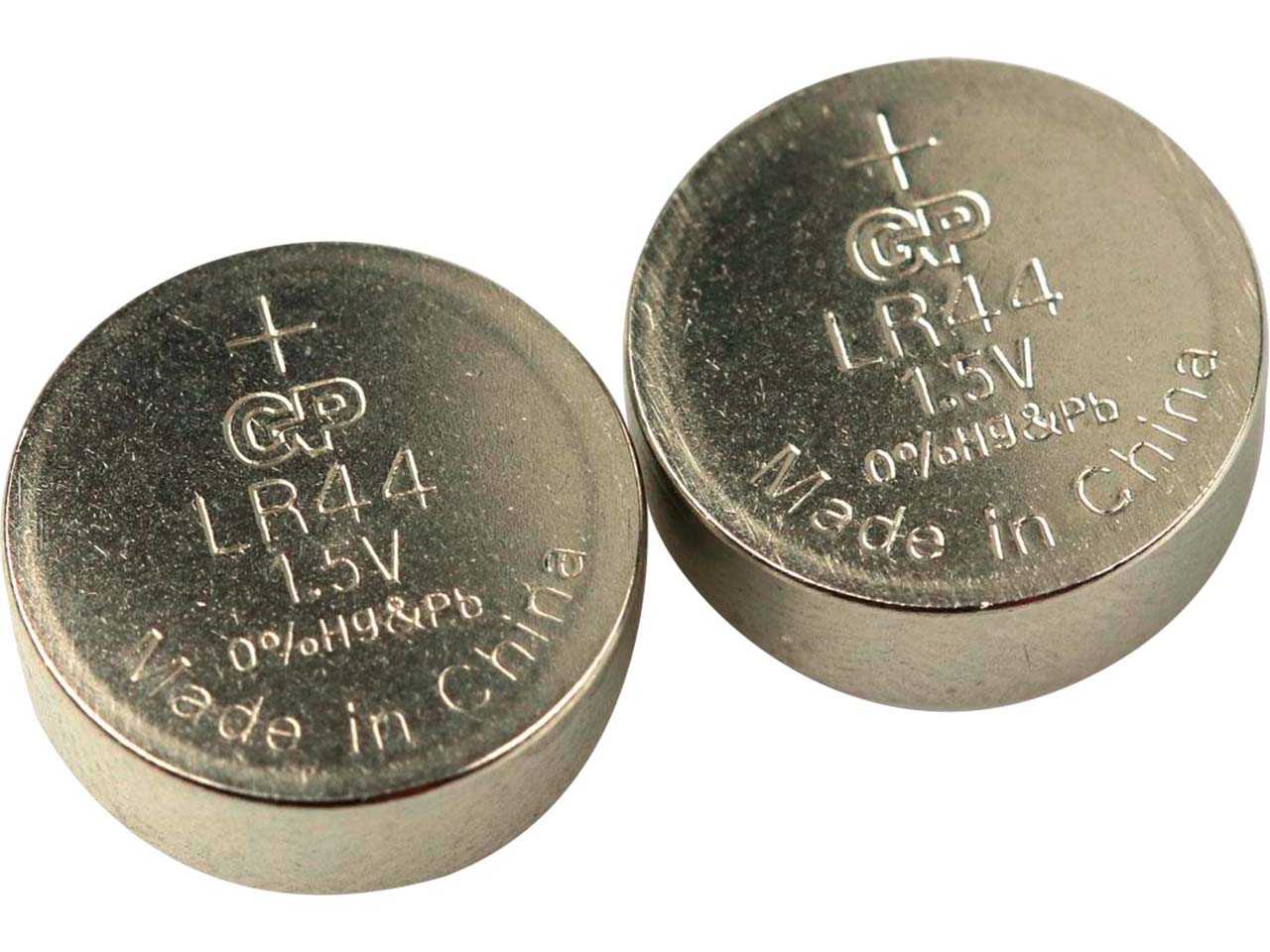 - Alkaline-Knopfzellen mit 1,5 V und 105 mAh Kapazität