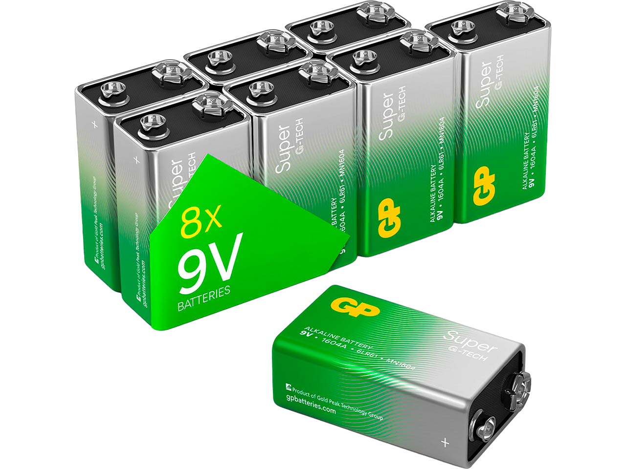 Die GP Super Alkaline 9-Volt-Block-Batterien bieten langanhaltende Leistung und sind ideal für Geräte mit hohem Energiebedarf wie Rauchmelder, Gamecontroller, elektrisches und funk-ferngesteuertes Spielzeug, Feuermelder, Metallsuchgeräte, sowie drahtlose Mikrofone und Kopfhörer. Diese leistungsstarke Batterie sorgt für zuverlässige Energieversorgung über einen langen Zeitraum. Inhalt 8 Stk.