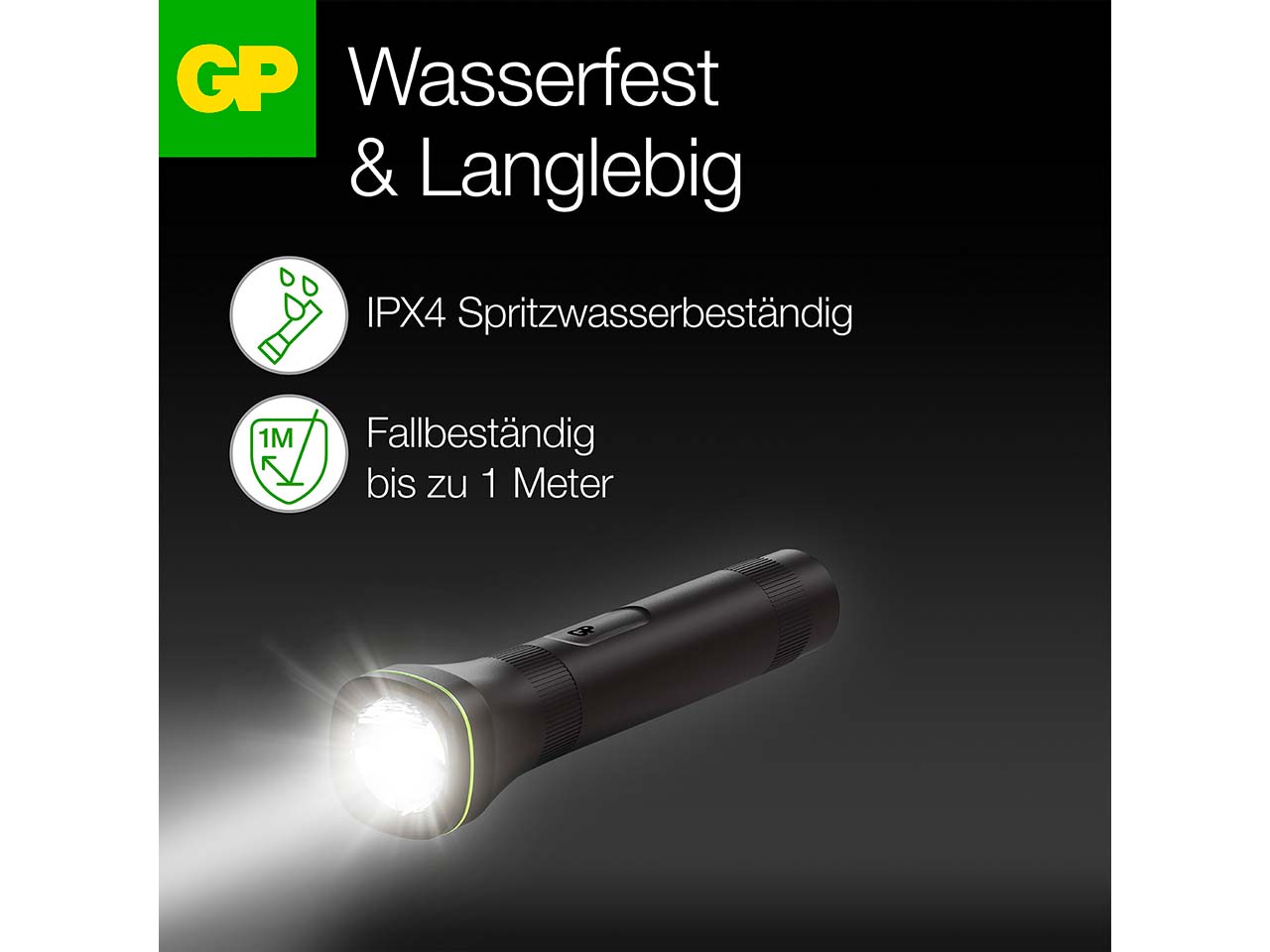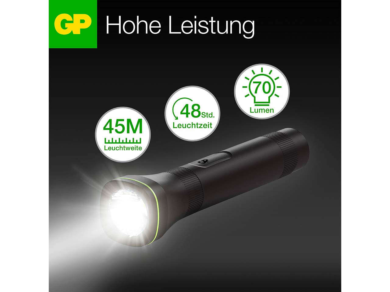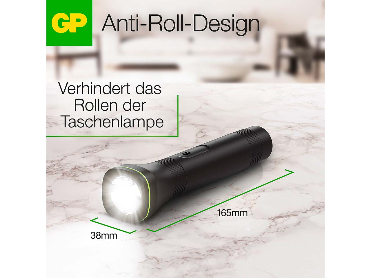 Die GP Taschenlampe bietet mit einer Lichtleistung von 70 Lumen und einer Leuchtweite von bis zu 45 Metern eine starke Leistung. Sie eignet sich hervorragend für tägliche Aktivitäten und Abenteuer. Mit einer Betriebsdauer von bis zu 48 Stunden liefert die C107 selbst bei längerer Nutzung zuverlässige Beleuchtung. Das Anti-Roll-Design verhindert das Wegrollen auf glatten Oberflächen, während der rutschfeste Griff sicheren Halt unter allen Bedingungen gewährleistet. Der Fokusmodus ermöglicht eine präzise Anpassung des Lichtstrahls an verschiedene Bedürfnisse. Die Taschenlampe ist nach IPX4 wasserdicht und sturzsicher bis 1 Meter. L 16,5 cm.