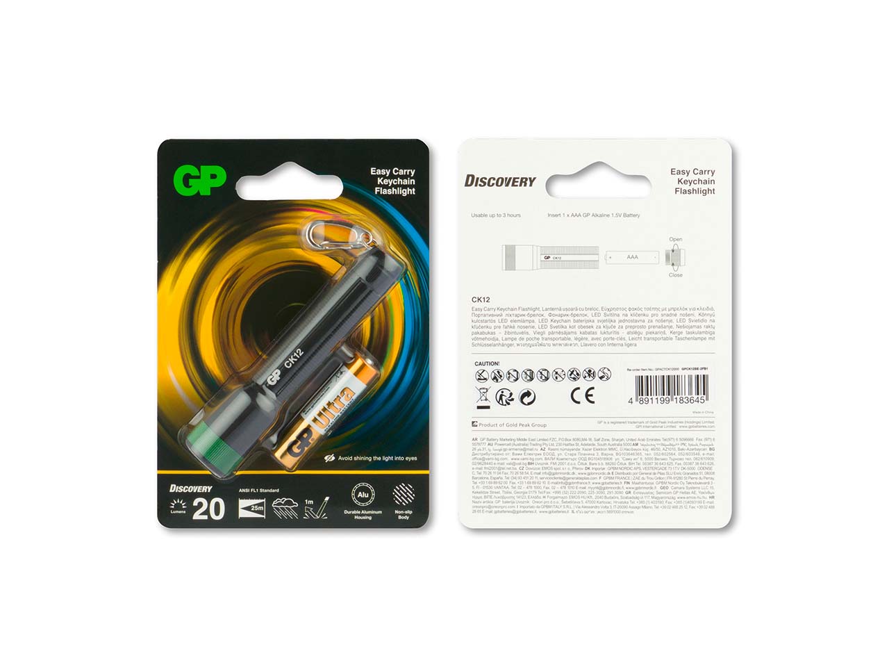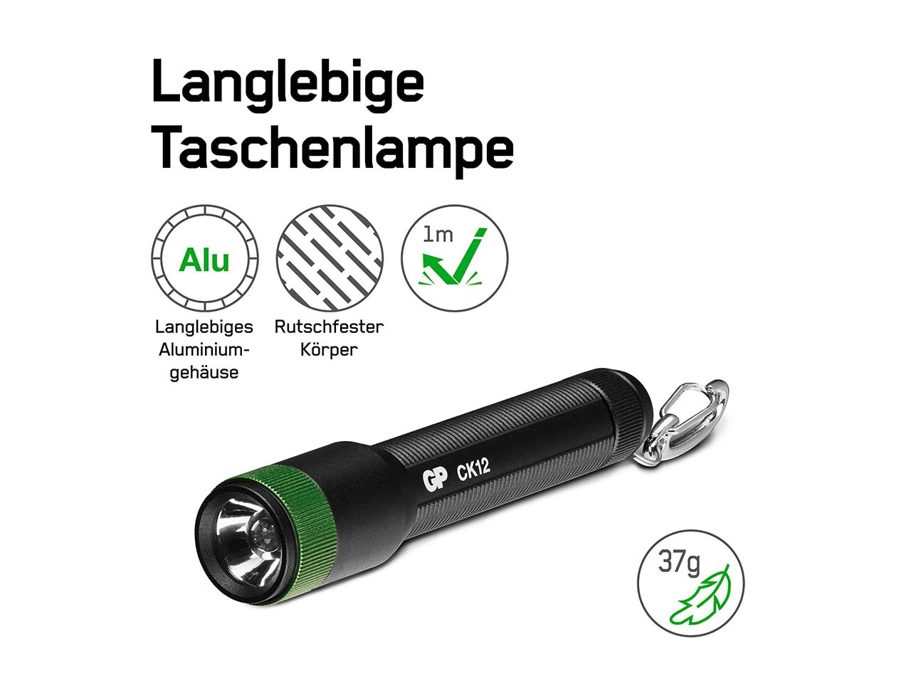 Im Alltag gibt es viele Momenten, in denen eine Taschenlampe von Vorteil ist. Genau dafür wurde die "CK 12" entwickelt. Sie ist nicht einmal 20 cm lang und lässt sich dank Haken am Schlüsselbund, im Rucksack oder Jackentasche aufbewahren. Die Taschenlampe hat ein stabiles Aluminiumgehäuse und ist geriffelt, wodurch mehr Halt entsteht. Dank IPX4 kann die Leuchte bei Wind und Wetter eingesetzt werden! Mit einer Lichtintensität von 20 Lumen und 25 m Reichweite bringt sie effektiv Licht in die Dunkelheit. Ganz einfach: Zum Ein- und Ausschalten muss nur der Lampenkopf gedreht werden! Die zur Nutzung benötigte AAA-Batterie mit 1,5 V ist im Lieferumfang enthalten. Tipp: Die Taschenlampe ist auch mit Akkus nutzbar. L 8,9 cm.