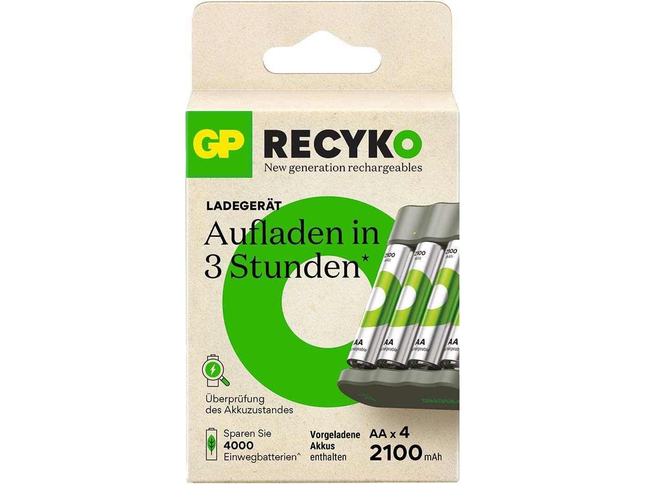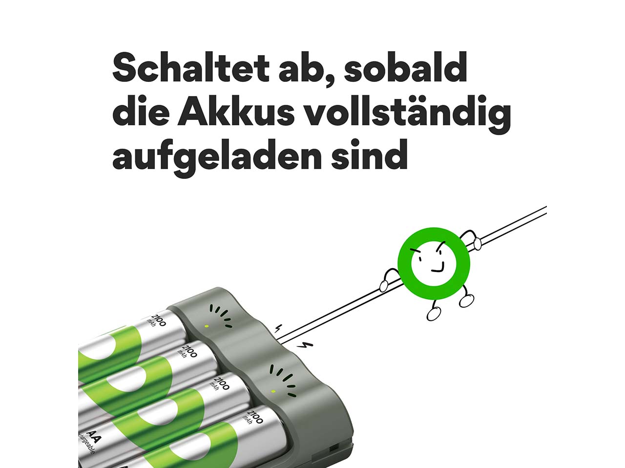 - Lädt 4 AA-Akkus innerhalb von drei Stunden vollständig auf