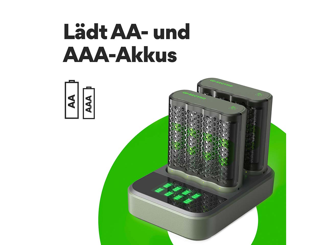 - Effizientes USB-Ladegerät für AA- und AAA-Akkus inkl. Ladestation