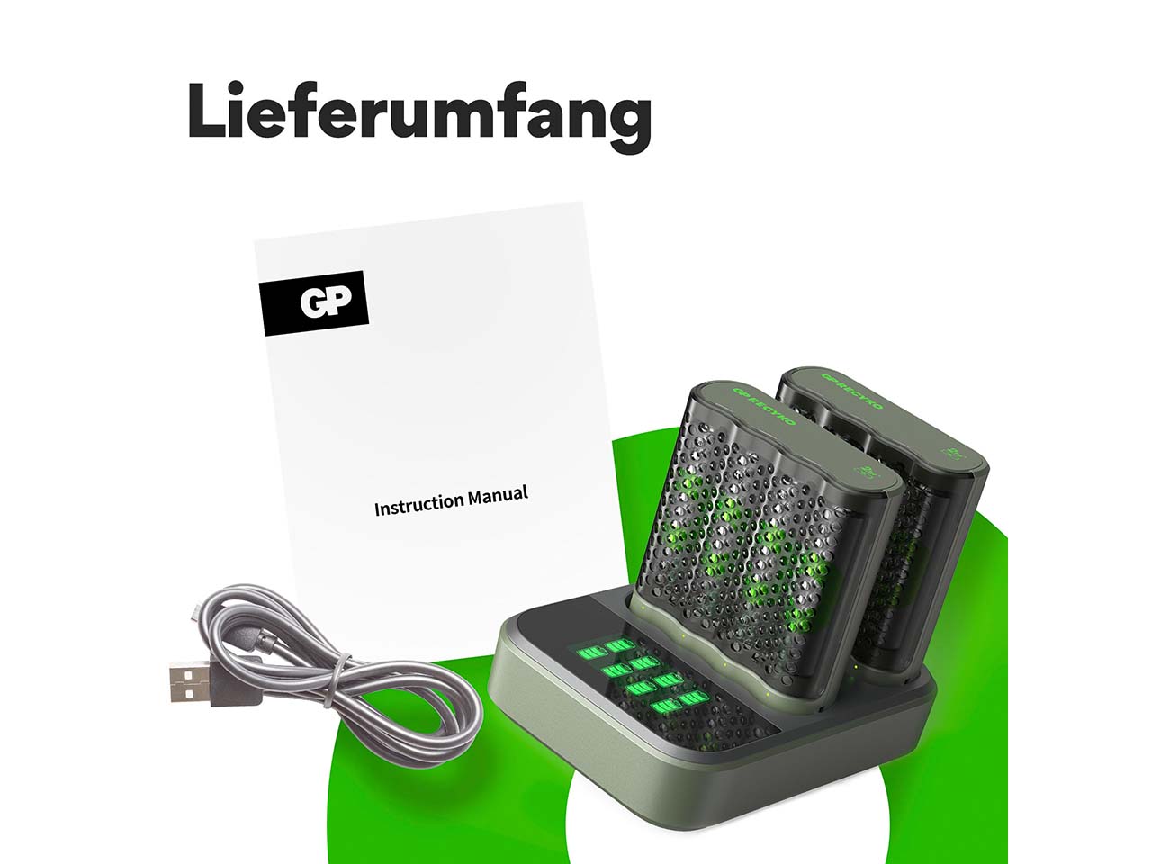 GP Battery USB Ladegerät "M452U" inkl. 8 x AA und USB-Dockingstation "M452D"