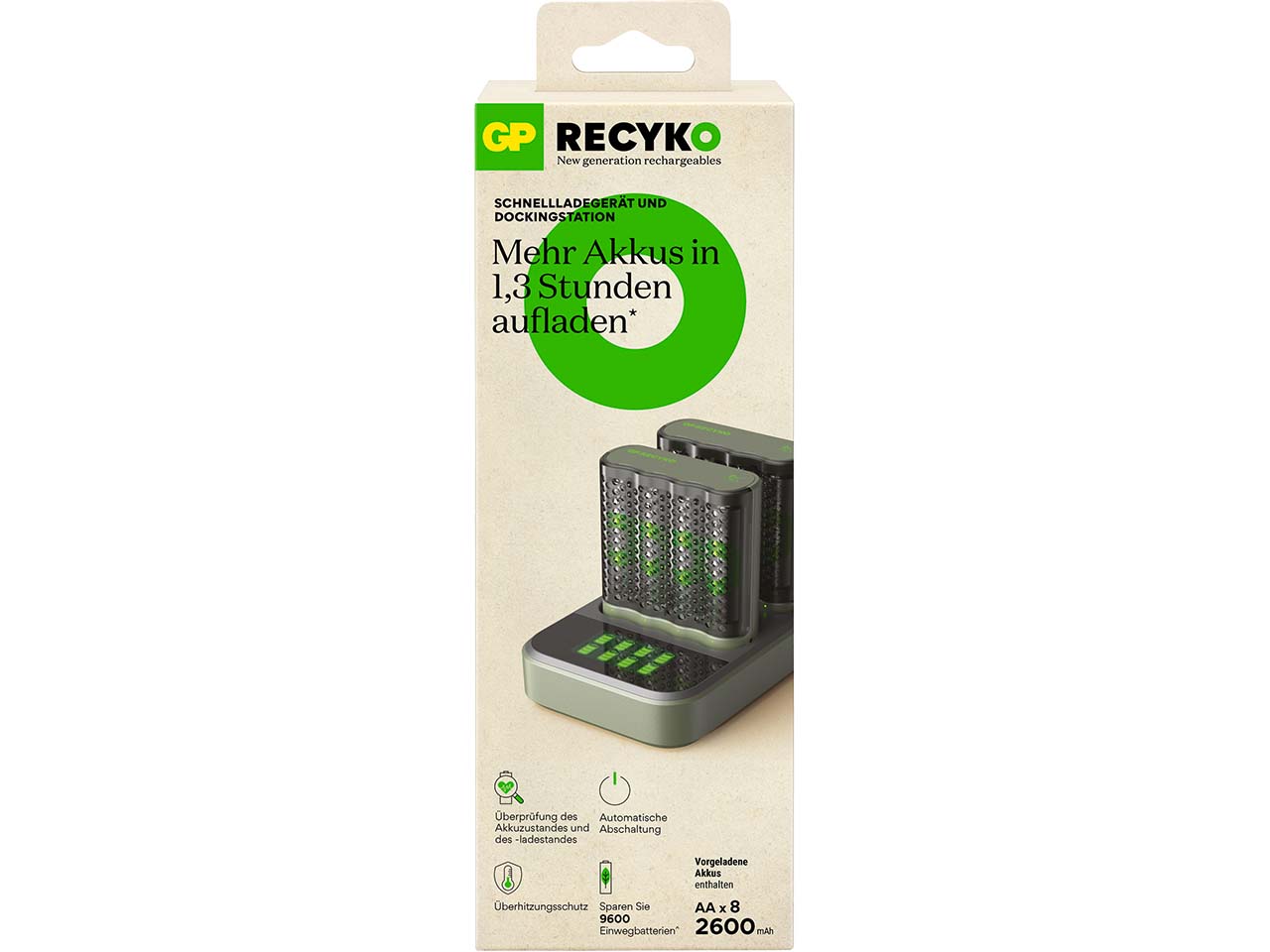 | Lieferumfang: | USB Ladekabel, 8x AA 2.600 mAh Akkus, USB Docking Station |