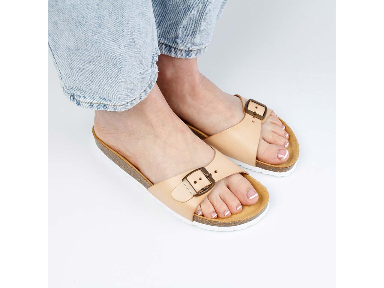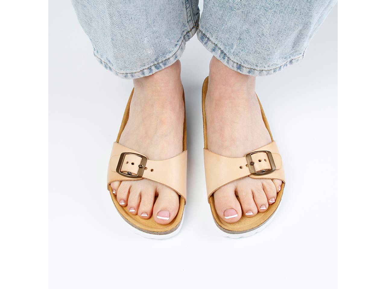 An warmen Sommertagen oder zu Hause sind diese Sandalen einfach ein Hit! Sie sind unglaublich bequem und mit ihrem minimalistischen Design sehr modisch. Sie haben einen verstellbaren Riemen und man muss einfach nur reinschlüpfen. Das Obermaterial der Pantoletten besteht aus pflanzlich gegerbtem Leder. Für ein optimales Fußklima ist das Fußbett mit chromfreiem Suedeleder bezogen. Die rutschhemmende Sohle besteht aus EVA. Die Sandalen sind ein echter Klassiker und dürfen im Sommer nicht fehlen.