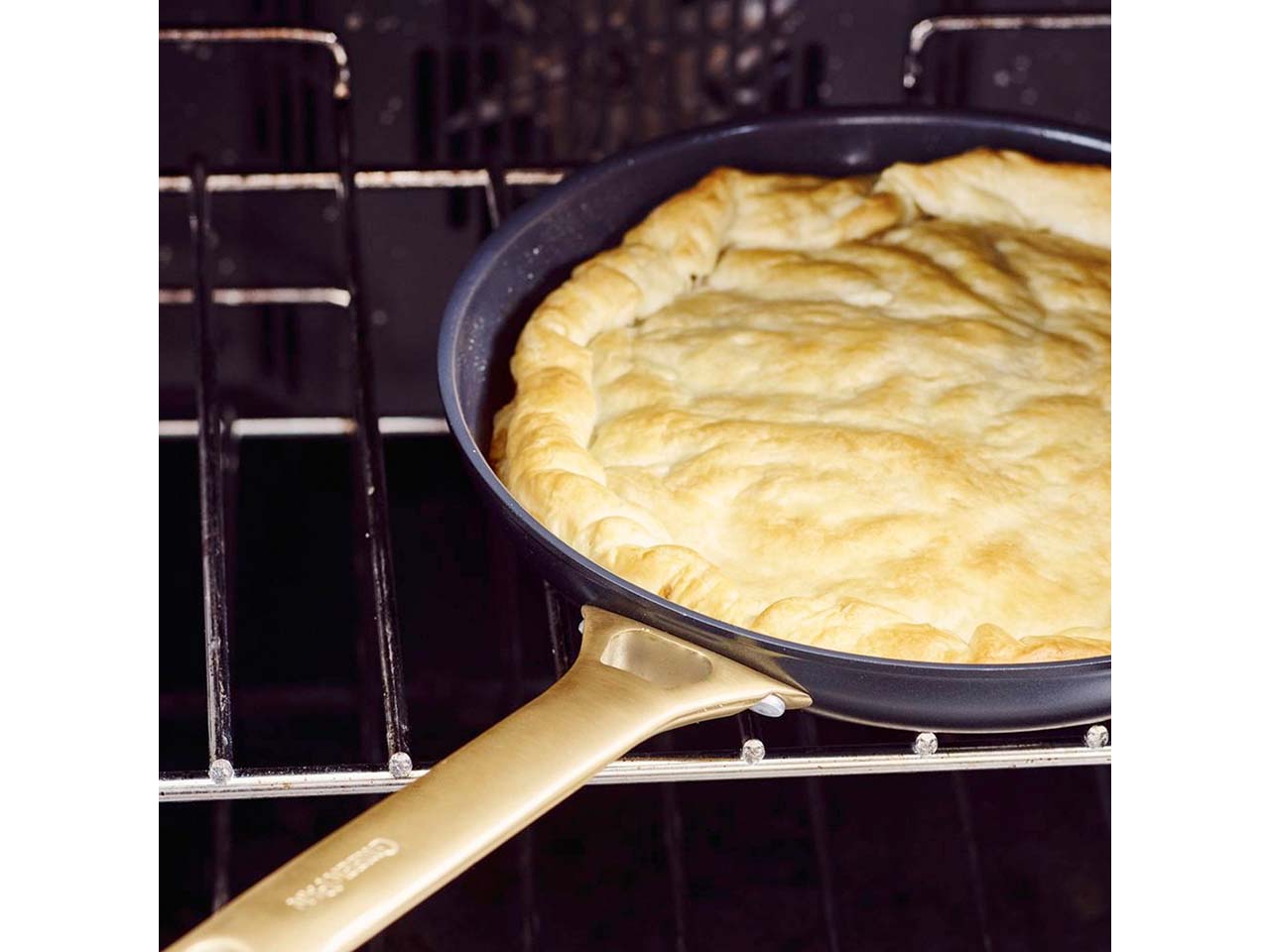 Diese hochwertigen, luxuriösen Bratpfannen aus geschmiedetem Aluminium und Griffen aus goldbeschichtetem Edelstahl sind die beste Wahl für alle, die perfekte Ergebnisse in der Küche erzielen wollen. Die stilvollen, langlebigen Pfannen haben eine diamantverstärkte, PFAS-freie Antihaftbeschichtung und eignen sich für alle Herdarten inklusive Induktion. Durch die zwei verschiedenen Größen können die Pfannen für eine Vielzahl von Zubereitungen verwendet werden. Sie sind sogar bis 200 °C ofenfest!