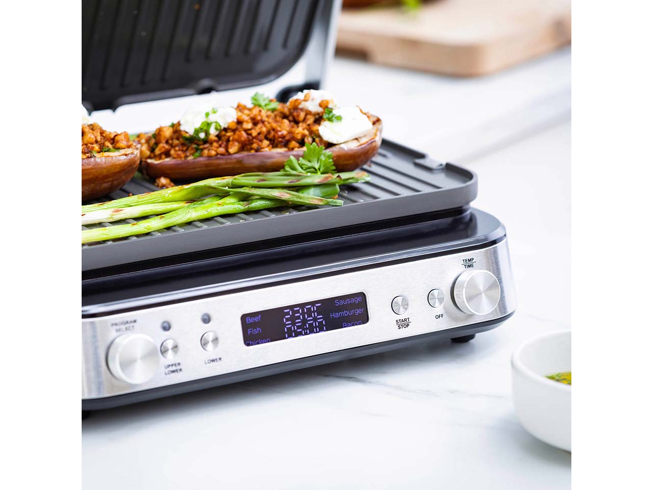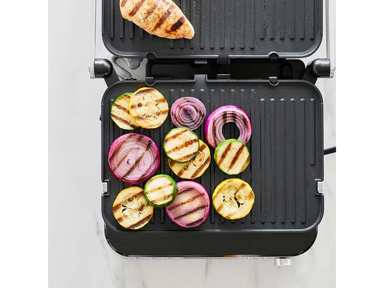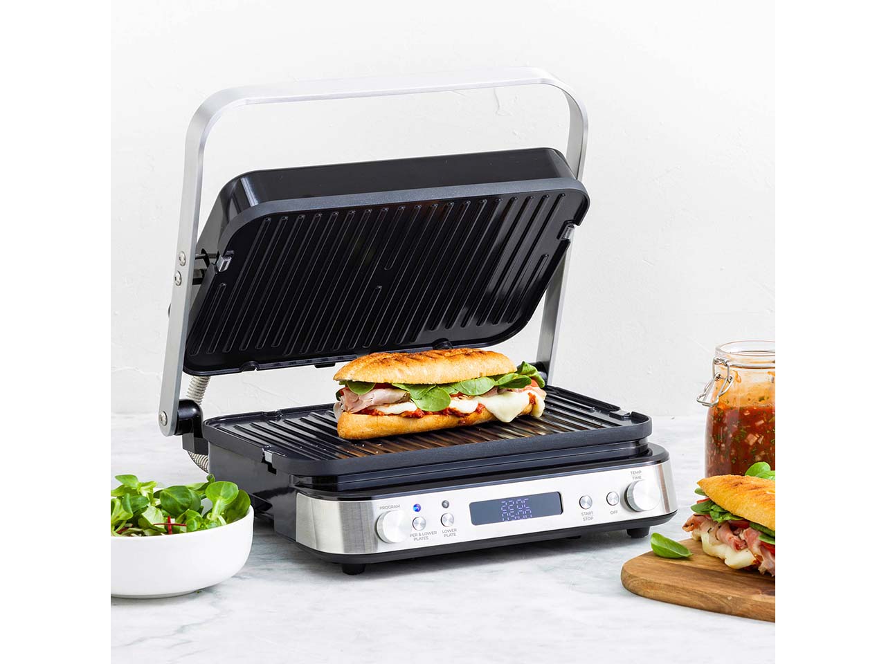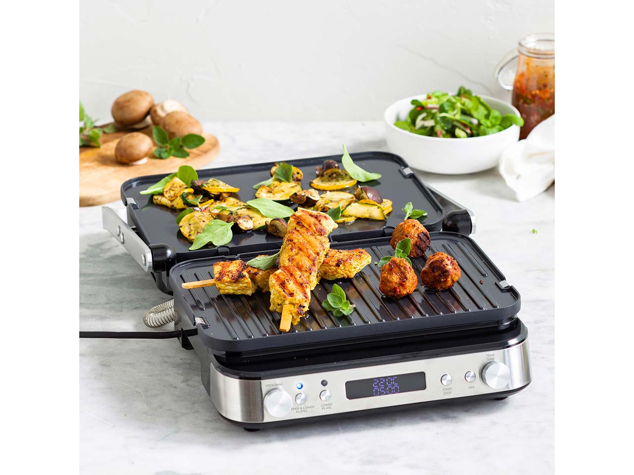 - PFAS-frei beschichteter Kontaktgrill mit 2 abnehm- und wendbaren Platten
