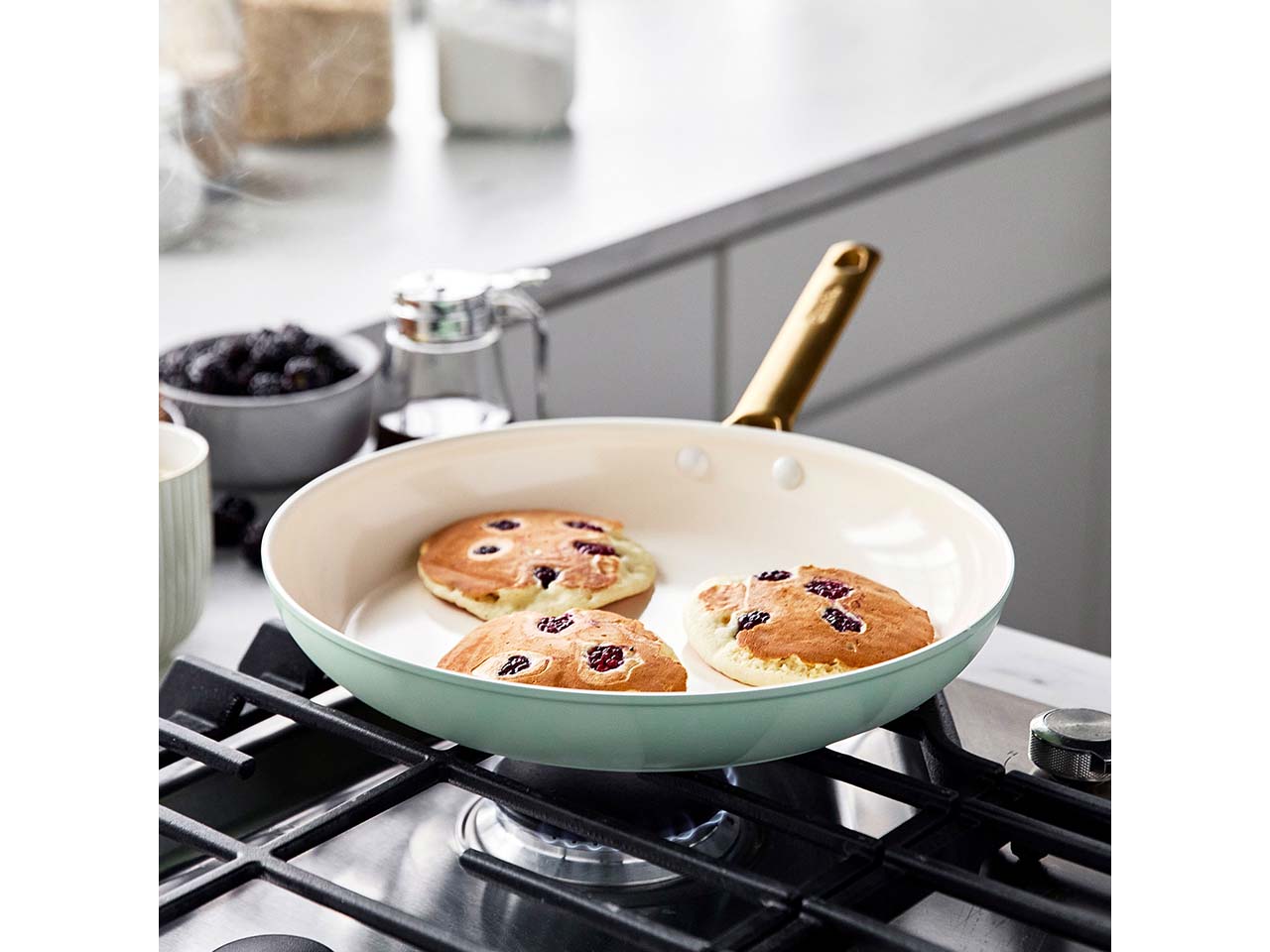 PFAS wirken sich negativ auf Mensch und Umwelt aus und gehören zu den sogenannten Forever Chemicals, die nur sehr langsam zerfallen und so gut wie unzerstörbar sind. GreenPan setzt bereits seit 2007 auf PFAS-freie Keramik-Antihaftbeschichtungen, die auf einem Sandderivat basieren. Die Beschichtung kommt bei Kochgeschirr und bei elektrischen Küchengeräten zum Einsatz. Sie wird direkt im eigenen Unternehmen hergestellt.
