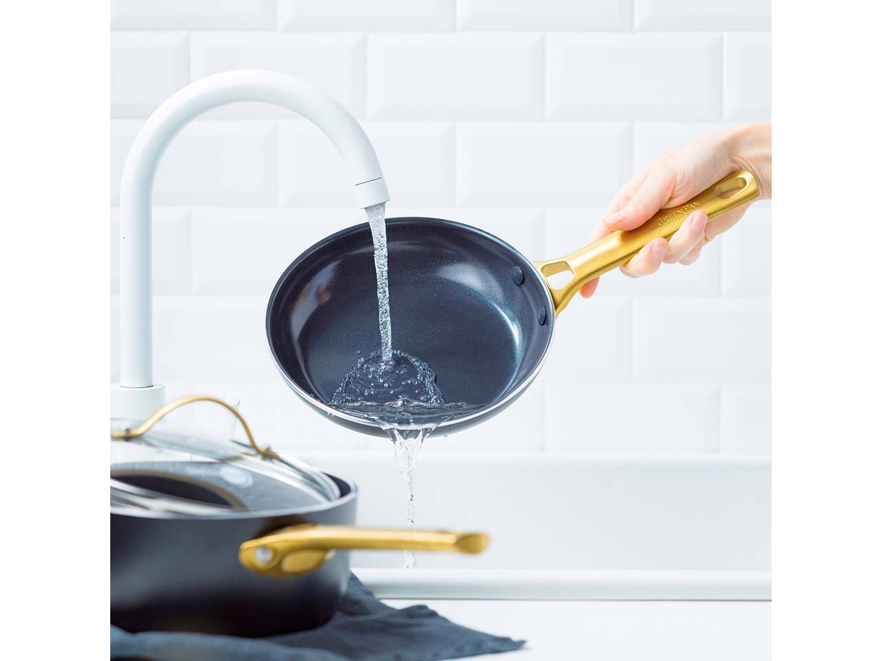 PFAS wirken sich negativ auf Mensch und Umwelt aus und gehören zu den sogenannten Forever Chemicals, die nur sehr langsam zerfallen und so gut wie unzerstörbar sind. GreenPan setzt bereits seit 2007 auf PFAS-freie Keramik-Antihaftbeschichtungen, die auf einem Sandderivat basieren. Die Beschichtung kommt bei Kochgeschirr und bei elektrischen Küchengeräten zum Einsatz. Sie wird direkt im eigenen Unternehmen hergestellt.
