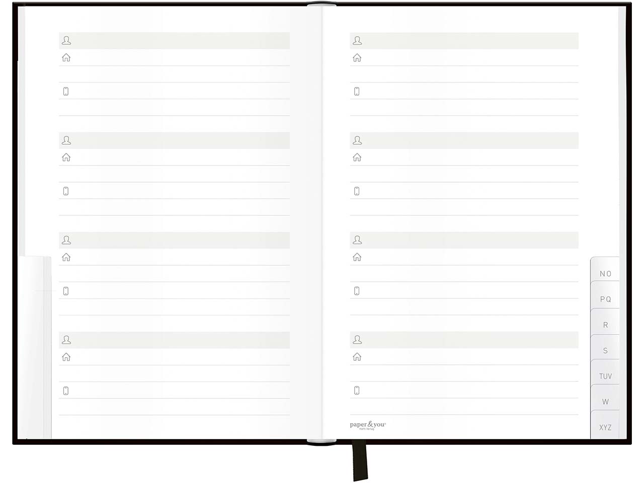 In diesem zeitlosen Adressbuch sind die Kontaktdaten für bis zu 560 Personen möglich! Das Hardcover-Adressbuch in DIN A6+ bietet dank Buchstabenregister eine optimale Einteilung. Mit je vier Adressfeldern pro Seite ist viel Platz für jeden einzelnen Kontakt. Die Sonderseiten für Geburtstage und Passwörter machen aus dem Adressbuch einen echten Allrounder. Das verwendete Papier stammt aus verantwortungsvoller Forstwirtschaft.