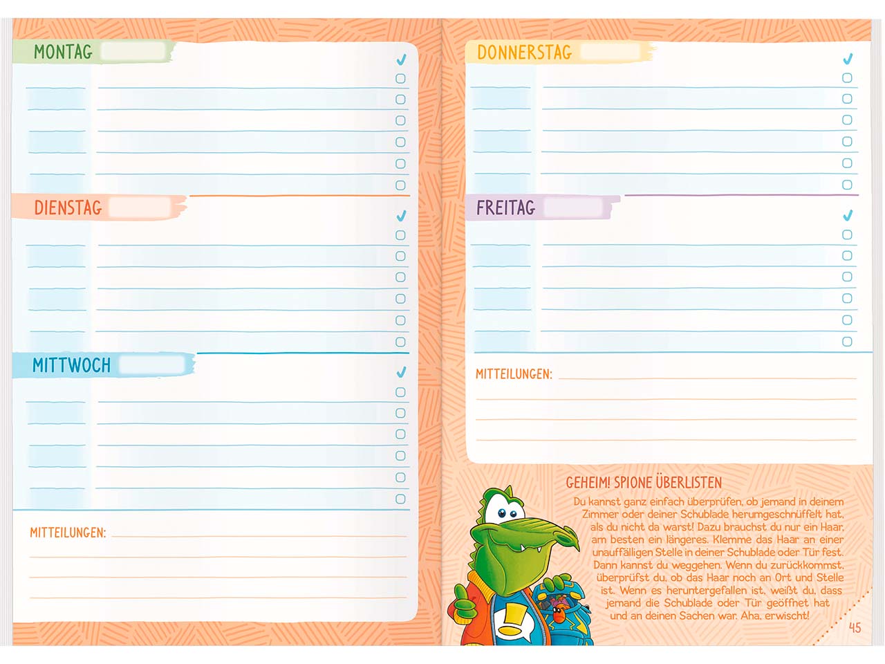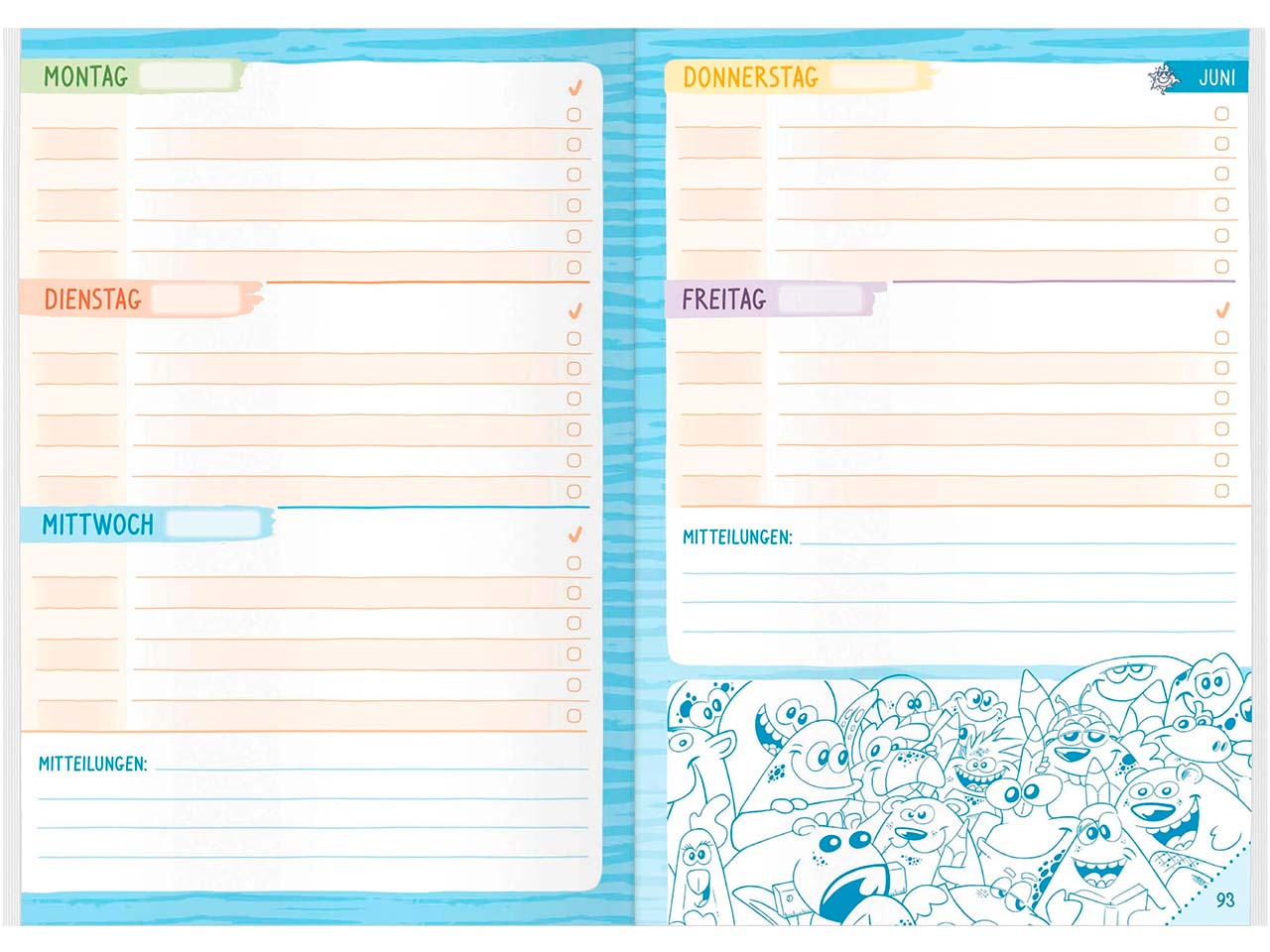 Selbstständigkeit Schritt für Schritt spielerisch lernen: Das Häfft Aufgabenheft trifft die perfekte Balance aus Spaß und Funktionalität! Das Heft ist zusammen mit Pädagog:innen kindgerecht entwickelt. Da kein vorgedrucktes Datum verwendet wird, kann das Aufgabenheft rund um das Jahr ganz individuell angefangen werden. Das Heft motiviert Kinder, jeden Tag einzutragen, welche Aufgaben außerhalb der Schule zu erledigen sind. Für eine bessere Übersicht sind die Wochentage von Montag bis Freitag in einer eigenen Farbe gehalten. So erkennen Kinder sofort und ganz leicht, wo sie in der Woche gerade sind. Die Zeilen sind so herausgearbeitet, dass Kinder beim Schreiben nicht verrutschen. Neben viel Platz zum Eintragen von Hausaufgaben steht Woche für Woche ein extra Mitteilungsfeld für Eltern, Lehrpersonal, Hort, etc. zur Verfügung, sodass eine reibungslose Kommunikation möglich ist. Das Aufgabenheft verfügt über Lerntipps, Denkspiele, verständliche, altersgerechte Erklärungen zu vielen Themengebieten und Sticker. Notenliste, Stundenpläne, Ferienübersicht und Deutschlandkarte ermöglichen eine perfekte Übersicht und Organisation. Das verwendete Papier stammt aus verantwortungsvollen Quellen. DIN A5, 70 g/m² Papier, geheftet, 112 Seiten.