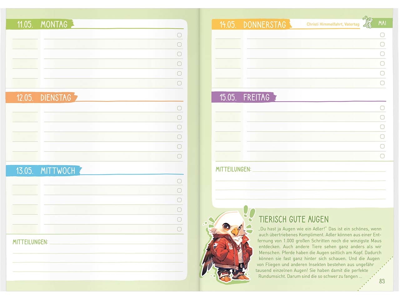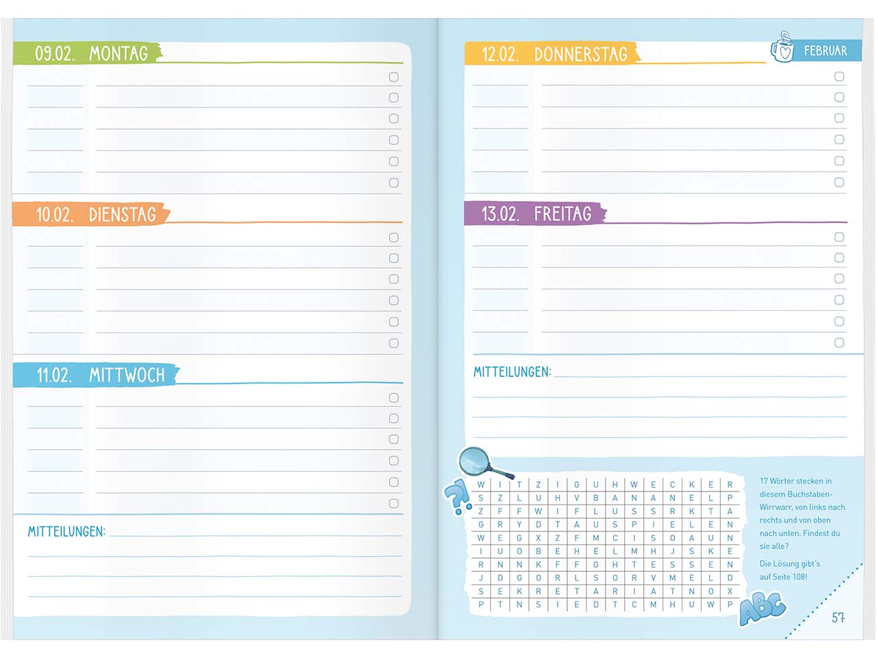 - Kindgerechtes Hausaufgabenheft im Format DIN A5