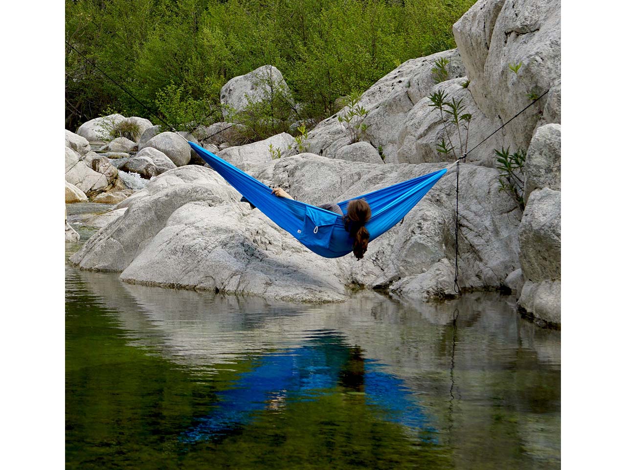 Die ist immer dabei, ganz egal, ob es auf das Festival geht, auf Weltreise oder die Bergtour: Die erste GOTS-zertifizierte und fair gehandelte Reisehängematte ist eine ebenso treue wie bequeme Begleitung. Die extra dicht und fest gewebte, langfaserige Bio-Baumwolle hält langjährige und intensive Benutzung locker aus – und fühlt sich dabei richtig angenehm auf der Haut an. Die Hängematte wiegt gerade einmal 950 g und trägt bis zu 180 kg! Mit 2,40 m Breite ist die Hängematte so perfekt, um es sich zu zweit gemütlich zu machen. „CAMINO L“ hat eine angenähte Tasche mit Kokosknopf und veganem Leder als Verstärkung, in der sich ein Buch, das Handy und mehr Dinge, die jederzeit griffbereit sein sollen, verstauen lassen. So kann man viele entspannte Stunden in der Hängematte verbringen, die Aussicht genießen, dem Wind lauschen und einfach die Seele baumeln lassen. Praktisch: Zusammengepackt ist die handliche Hängematte ein kleines Reisekissen! Liegefläche 240 x 300 cm.