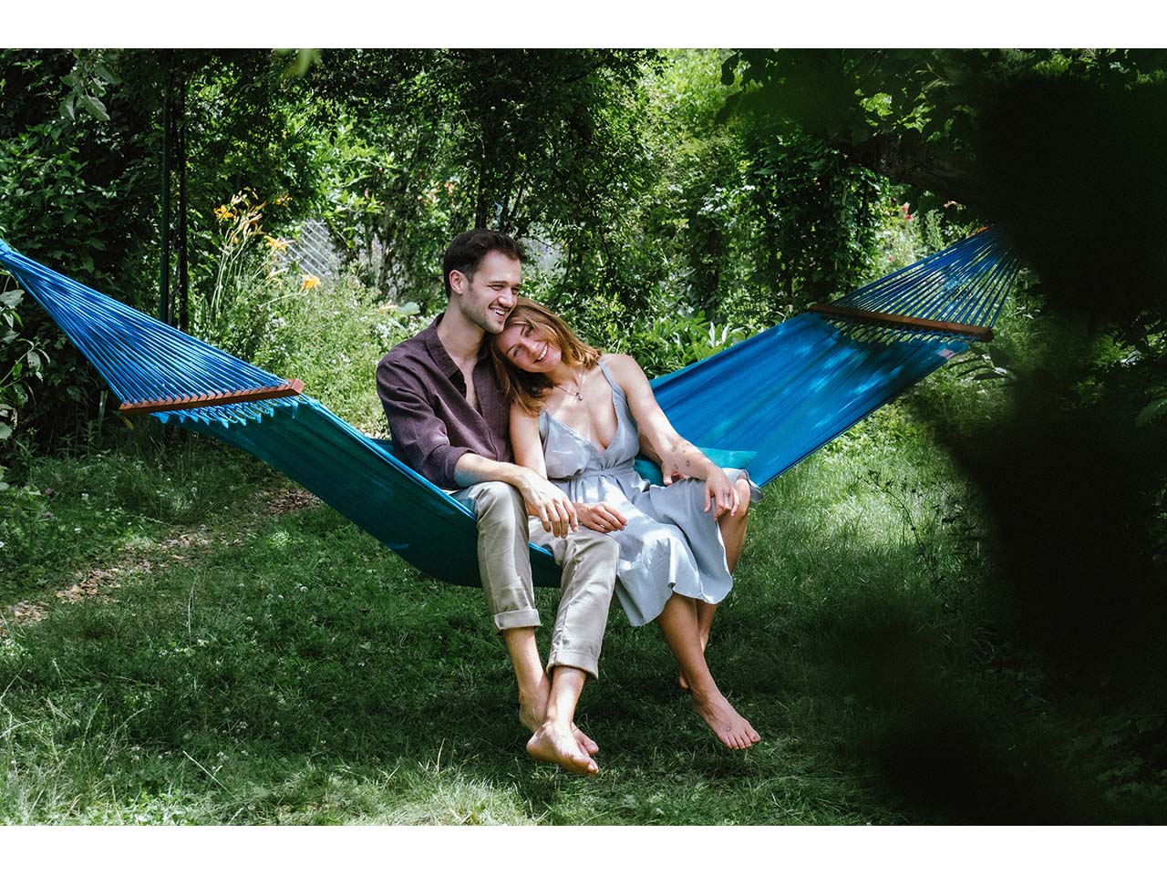 Urlaubsfeeling pur – und das im eigenen Garten! Die klassische Stabhängematte ist perfekt, um sie zwischen zwei Bäumen anzubringen und es sich dann gemütlich zu machen. Einfach die Seele baumeln lassen und die weiche Qualität der GOTS-zertifizierten, handgewebten Bio-Baumwolle genießen. Stabhängematten haben den Vorteil, dass der Ein- und Ausstieg leichter ist als bei anderen Modellen. Das ist doch ideal, wenn man in der Mittagspause mal kurz entspannen will! Liegefläche 120 x 210 cm.