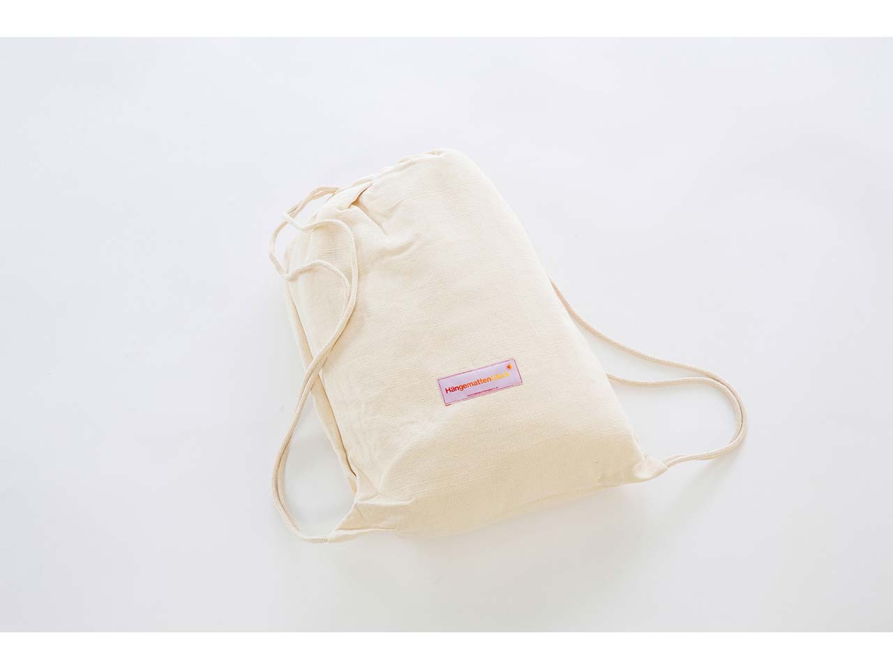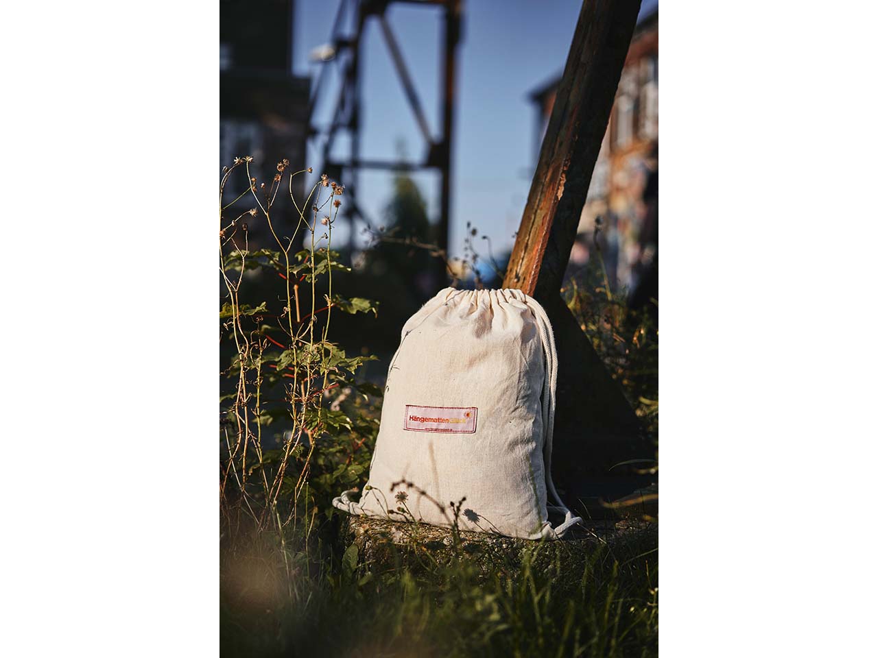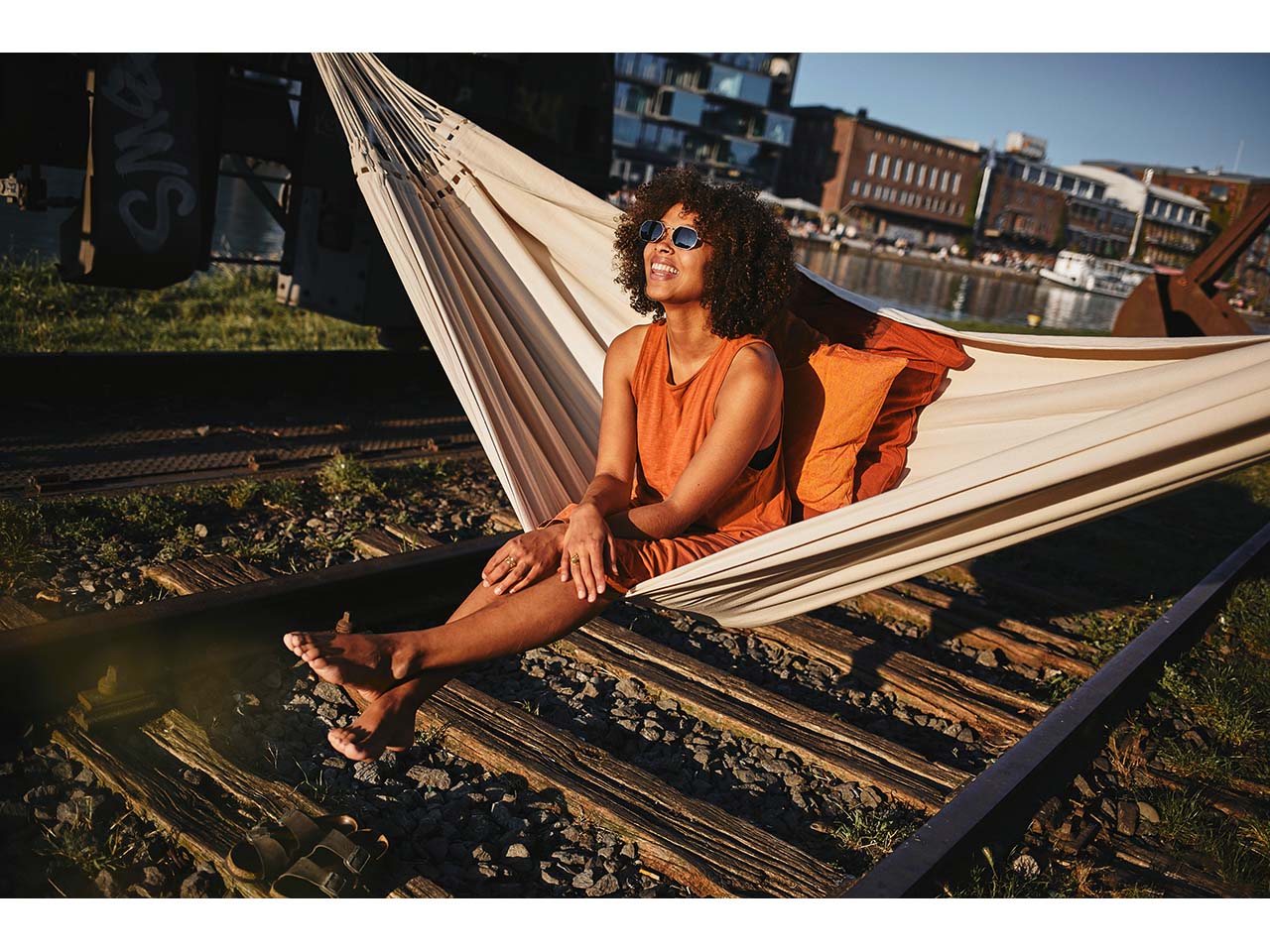 Zweisamkeit genießen oder es sich alleine gemütlich machen: In dieser Hängematte ist beides möglich! Bequem ist es immer, denn die handgefertigte Tuchfläche aus GOTS-zertifizierter Bio-Baumwolle fühlt sich richtig schön weich an. Die Aufhängung ist aus extra dicken Schnüren gefertigt, die durch ein zusätzliches Band verstärkt sind, sodass ganz viel Stabilität und Sicherheit entstehen. Die Tuchhängematte ist perfekt für den Garten, beim Camping oder auch als ungewöhnliches Gästebett. Praktisch: Im mitgelieferten Beutel ist die Hängematte bei Nichtgebrauch platzsparend untergebracht und lässt sich einfach transportieren. Liegefläche 240 x 170 cm.