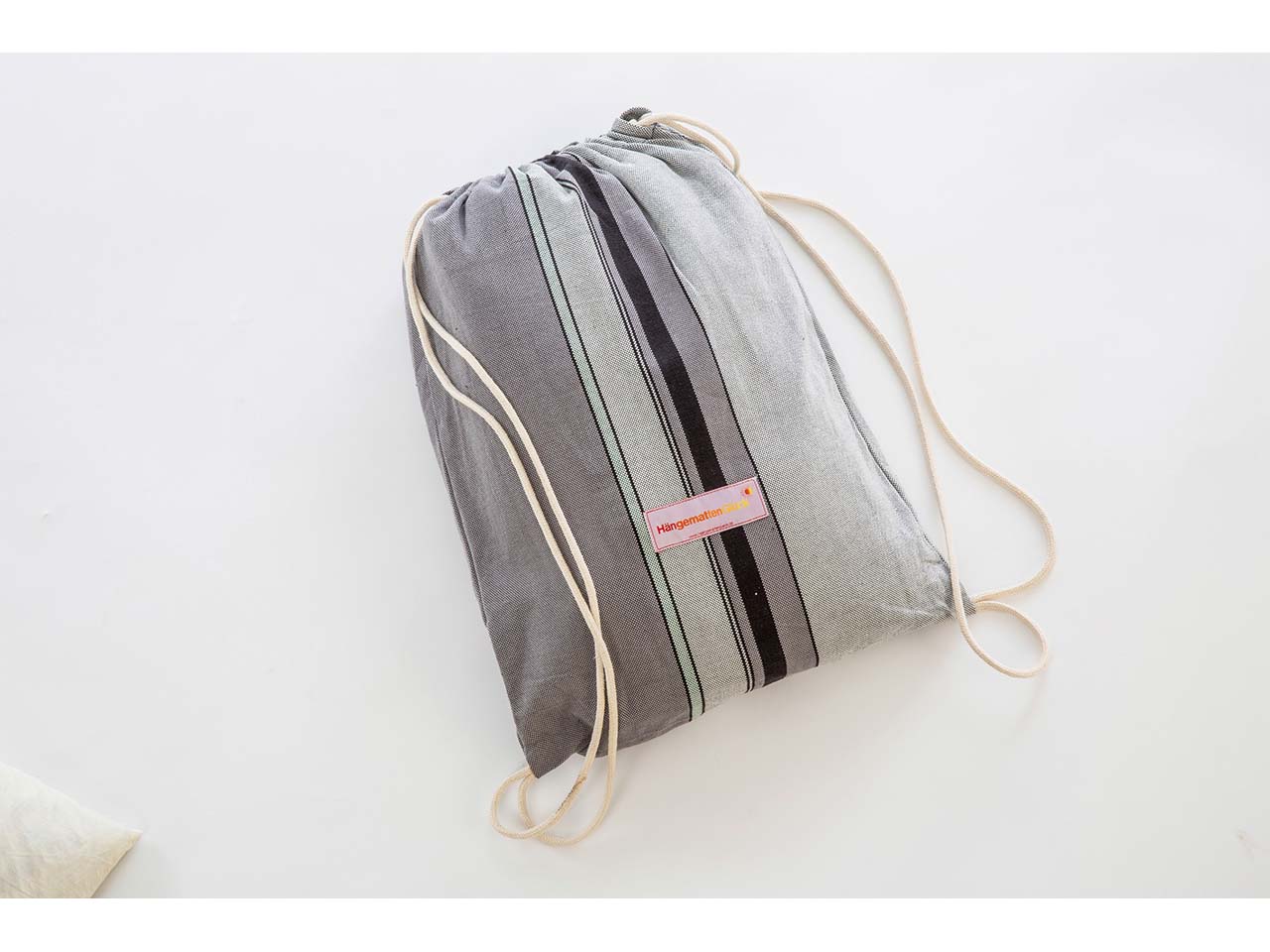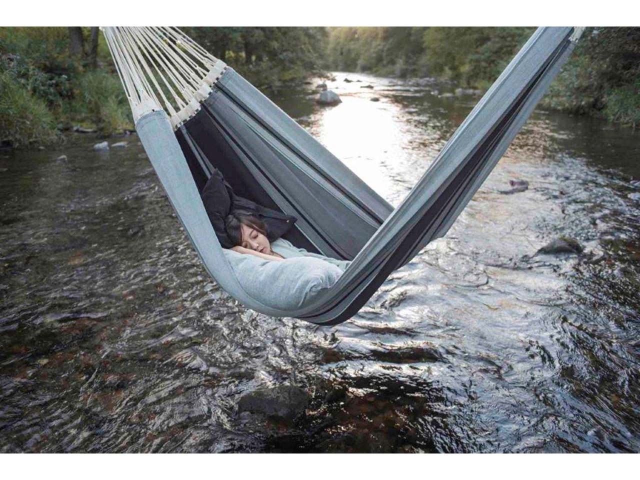 Zweisamkeit genießen oder es sich alleine gemütlich machen: In dieser Hängematte ist beides möglich! Bequem ist es immer, denn die handgefertigte Tuchfläche aus GOTS-zertifizierter Bio-Baumwolle fühlt sich richtig schön weich an. Die Aufhängung ist aus extra dicken Schnüren gefertigt, die durch ein zusätzliches Band verstärkt sind, sodass ganz viel Stabilität und Sicherheit entstehen. Die Tuchhängematte ist perfekt für den Garten, beim Camping oder auch als ungewöhnliches Gästebett. Praktisch: Im mitgelieferten Beutel ist die Hängematte bei Nichtgebrauch platzsparend untergebracht und lässt sich einfach transportieren. Liegefläche 240 x 170 cm.