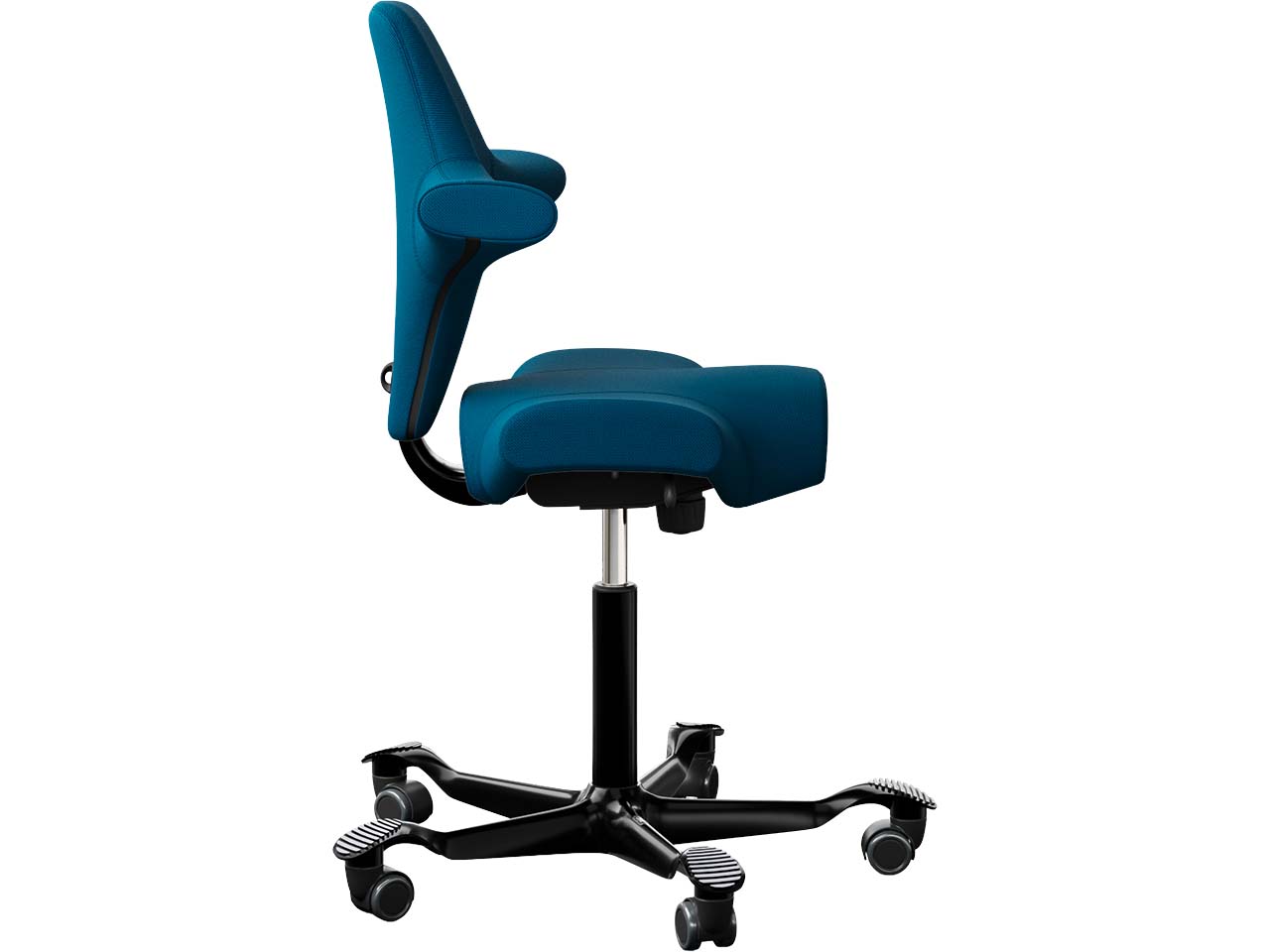 Ein Meisterwerk der Flexibilität – selbst sitzend kann man sich auf diesem Bürodrehstuhl bewegen! Mit dem höhenverstellbaren Sattelsitz sind niedrige bis halbstehende Arbeitspositionen möglich. Durch den Sattelsitz wird zu einer natürlichen Aufrichtung des Oberkörpers angeregt. Das moderne, ausgeklügelte Design bietet verschiedene Sitzmöglichkeiten. Das erhöht den Komfort an längeren Arbeitstagen und fördert ein dynamisches Sitzen. Dazu trägt auch die patentierte HAG inBalance® Technologie bei, die einen freifließenden Bewegungsablauf nach hinten fördert. Sitztiefe und Höhe der Rückenlehne sind individuell anpassbar. Der Bürodrehstuhl mit einem Bezugsstoff aus Schurwolle und Polyamid eignet sich hervorragend für höhenverstellbare Arbeitsplätze. Er ist ideal für Tischhöhen ab 72 cm. Ein Aluminiumfußkreuz mit anatomisch geformten Auflageflächen rundet das durchdachte Design des Bürostuhls perfekt ab. Die umweltverträgliche Herstellung gewährleisten die Siegel EU Ecolabel und Greenguard.