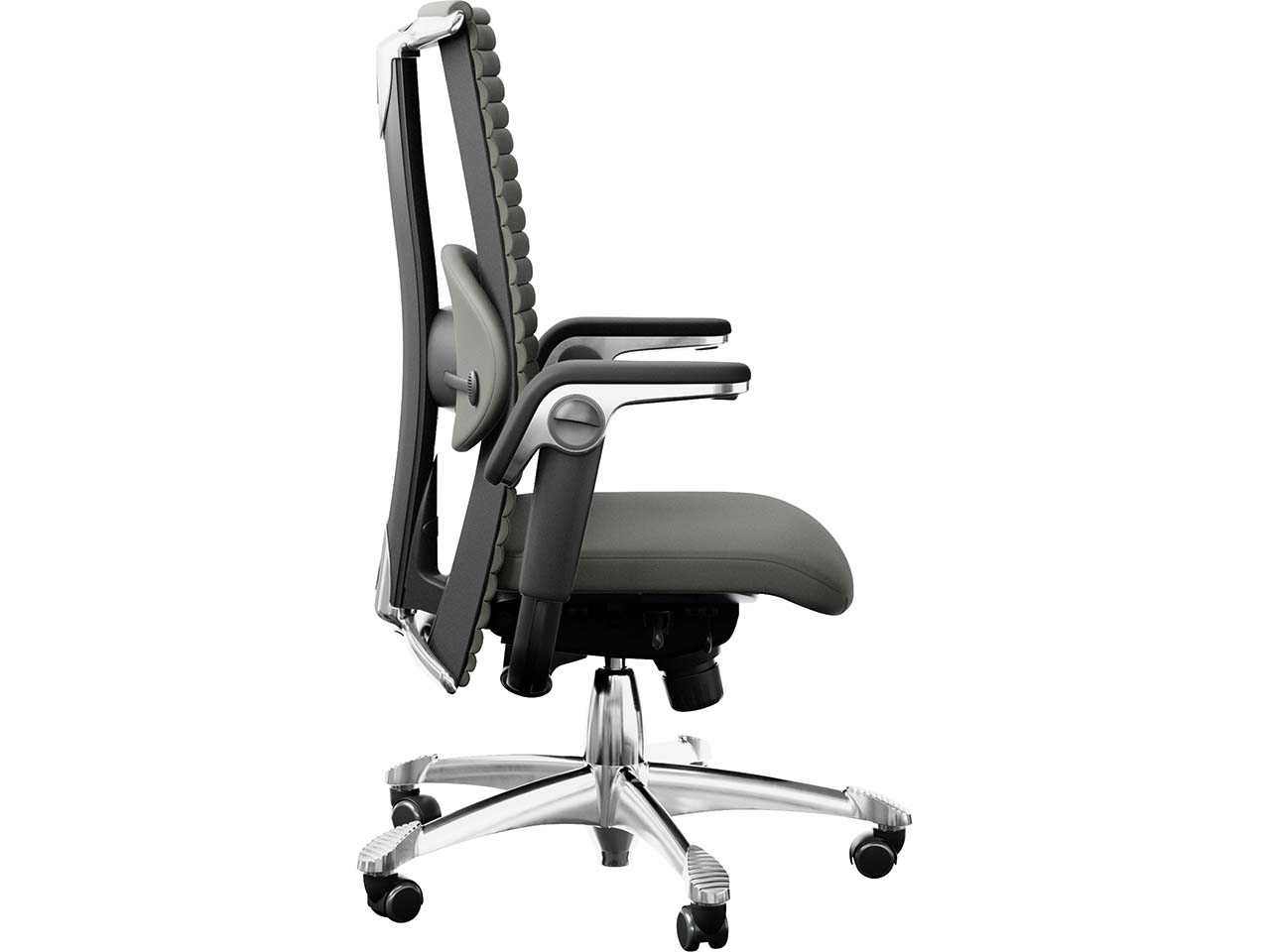 Hier trifft Eleganz auf höchsten Komfort: Der Bürodrehstuhl ist ein Design-Meisterwerk, das gleichzeitig für eine dynamische, bequeme Sitzhaltung beim Arbeiten sorgt. Das moderne Design mit Lederpolsterung wirkt besonders elegant und zieht die Blicke auf sich. Sitzkomfort entsteht durch die halbhohe Rückenlehne und die patentierte HAG inBalance® Technologie, die eine natürliche Bewegung unterstützt. Für die Extraportion Komfort sorgt die justierbare Lordosenstütze. Ein weiteres Highlight sind die multifunktionalen Armlehnen mit TiltDown-Funktion. Dabei können die Armlehnen nach unten geklappt werden, sodass man näher am Schreibtisch sitzt. Weitere Einstellungen umfassen den ein- und feststellbaren Neigungswinkel sowie die Anpassungen von Sitzhöhe und Sitztiefe. Durch die anatomisch geformten Auflageflächen auf dem Fußkreuz wird die Blutzirkulation gefördert. Der Drehstuhl bereichert jedes Büro. Das Greenguard-Siegel gewährleistet eine umweltverträgliche Herstellung.