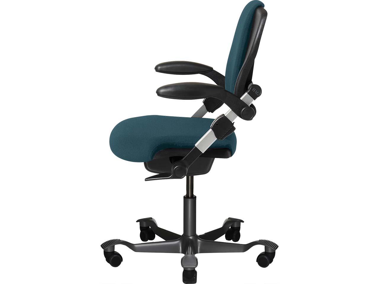 Der Bürodrehstuhl eignet sich dank hohen Sitzkomforts perfekt für die Arbeit am Schreibtisch. Dank der patentierten HAG inBalance®-Technologie passt sich der Stuhl intuitiv den natürlichen Bewegungsmustern an und unterstützt eine dynamische Sitzhaltung. Für Komfort sorgen auch die individuell einstellbare Sitzhöhe und Sitztiefe. Der Wasserfallsitz unterstützt die Blutzirkulation. Der besonders scheuerbeständige Bezug aus recyceltem Polyester gewährleistet Langlebigkeit. Durch die Universalrollen eignet sich der Bürostuhl für die Nutzung auf unterschiedlichen Untergründen und Bodenbelägen.