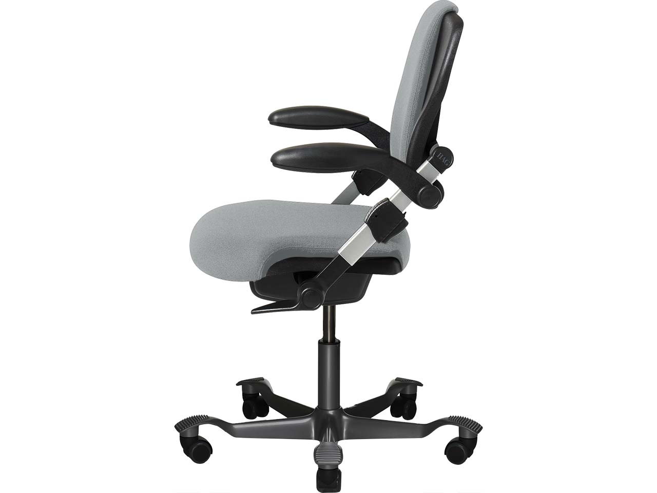Der Bürodrehstuhl eignet sich dank hohen Sitzkomforts perfekt für die Arbeit am Schreibtisch. Dank der patentierten HAG inBalance®-Technologie passt sich der Stuhl intuitiv den natürlichen Bewegungsmustern an und unterstützt eine dynamische Sitzhaltung. Für Komfort sorgen auch die individuell einstellbare Sitzhöhe und Sitztiefe. Der Wasserfallsitz unterstützt die Blutzirkulation. Der besonders scheuerbeständige Bezug aus recyceltem Polyester gewährleistet Langlebigkeit. Durch die Universalrollen eignet sich der Bürostuhl für die Nutzung auf unterschiedlichen Untergründen und Bodenbelägen.