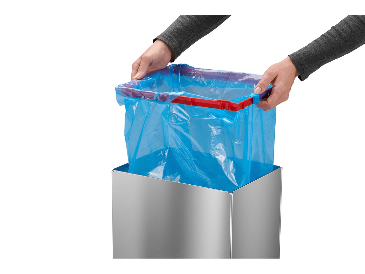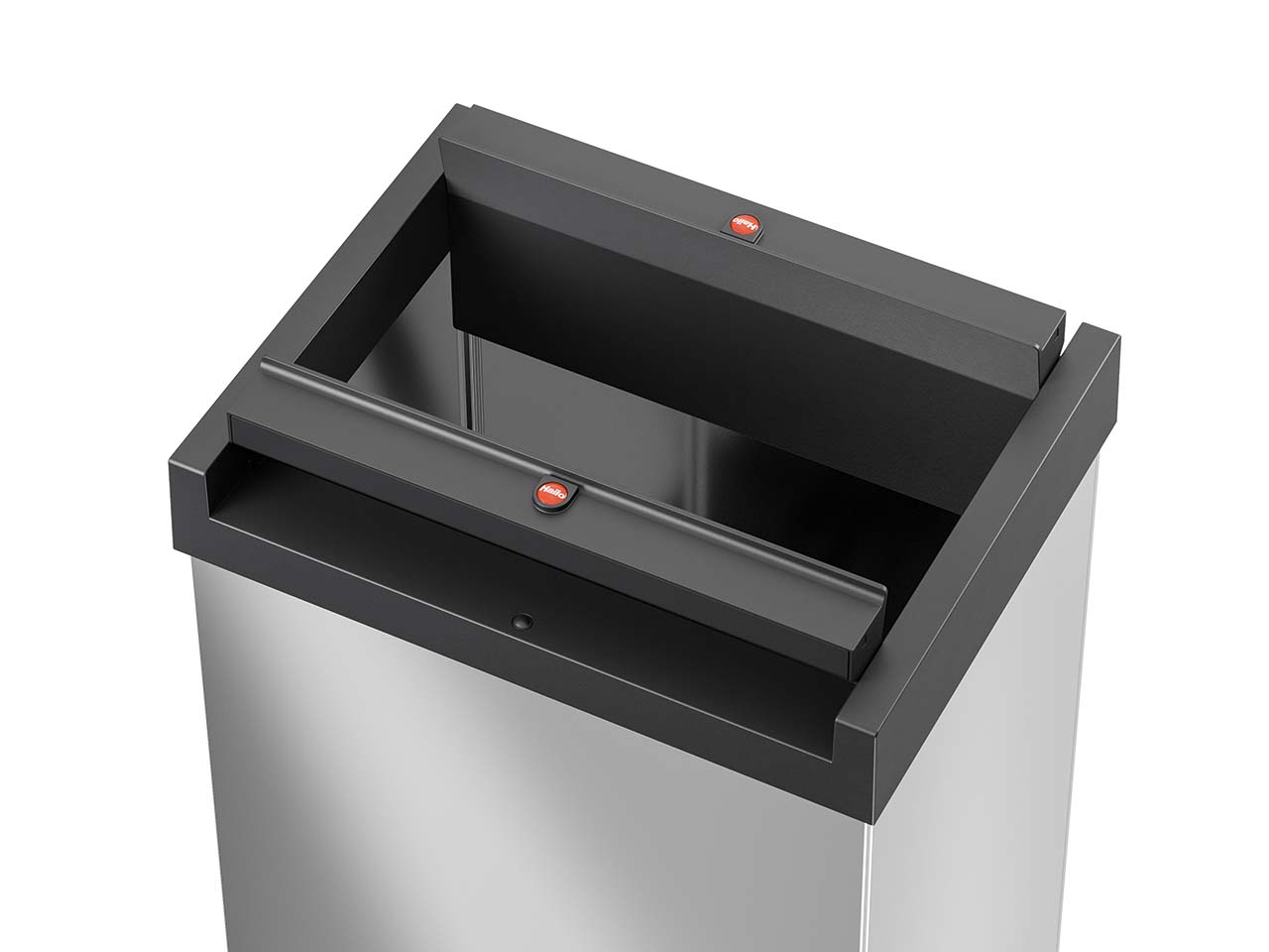 Edle Optik und ganz viel Funktion: Der Großraum-Mülleimer von Hailo fügt sich perfekt in Büro- und Arbeitsumgebungen ein. Die Müllbox verfügt über einen selbstschließenden Schwingdeckel und 4 Anti-Rutsch-Füße, die sicheren Stand gewährleisten. Das Rechteck-Gehäuse besteht aus Edelstahl und ist mit einem Klemmrahmen ausgestattet, wodurch sich Müllbeutel sicher einklemmen lassen. Die praktischen Schwingdeckelflügel können bei Bedarf für eine dauerhafte Öffnung auch festgestellt werden. Der Mülleimer hat ein Volumen von 52 l. B 33,9 x T 26 x H 76,3 cm.