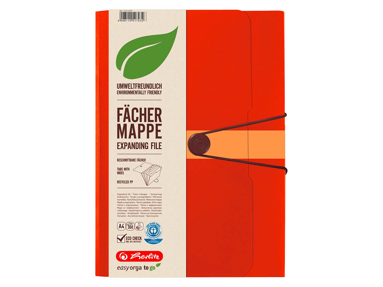 Die Fächermappe von herlitz besteht aus Recycling-PP und ist mit dem Blauen Engel ausgezeichnet.