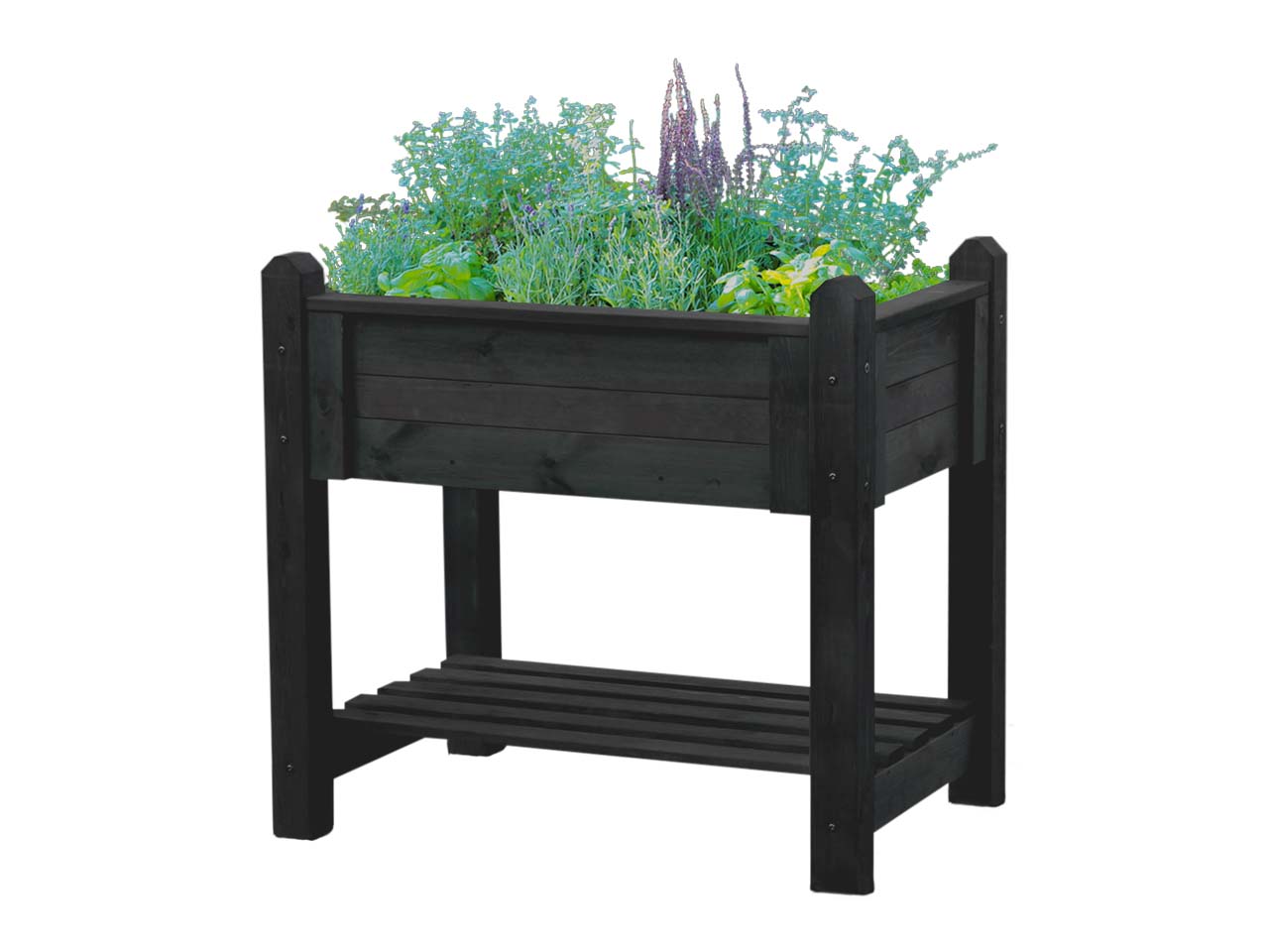 In diesem wunderschönen Kräuterbeet wachsen und gedeihen Garten- und Küchenkräuter wie Thymian, Basilikum oder Petersilie. Durch die Höhe von 84,5 cm ist das Arbeiten am Beet sehr angenehm. Die Ablagefläche ist ideal, um Werkzeug, Handschuhe und mehr abzulegen. Das Kräuterbeet ist aus massivem, FSC-zertifiziertem Kiefernholz gefertigt und exzellent verarbeitet. Die stabile Konstruktion mit Liebe zum Detail punktet auch farblich: Das Anthrazit wirkt besonders edel und fügt sich dezent ein. Das Kräuterbeet ist in zwei Größen erhältlich. Die große Variante: B 114 x T 60 cm. Die kleine Variante: B 90 x T 60 cm.