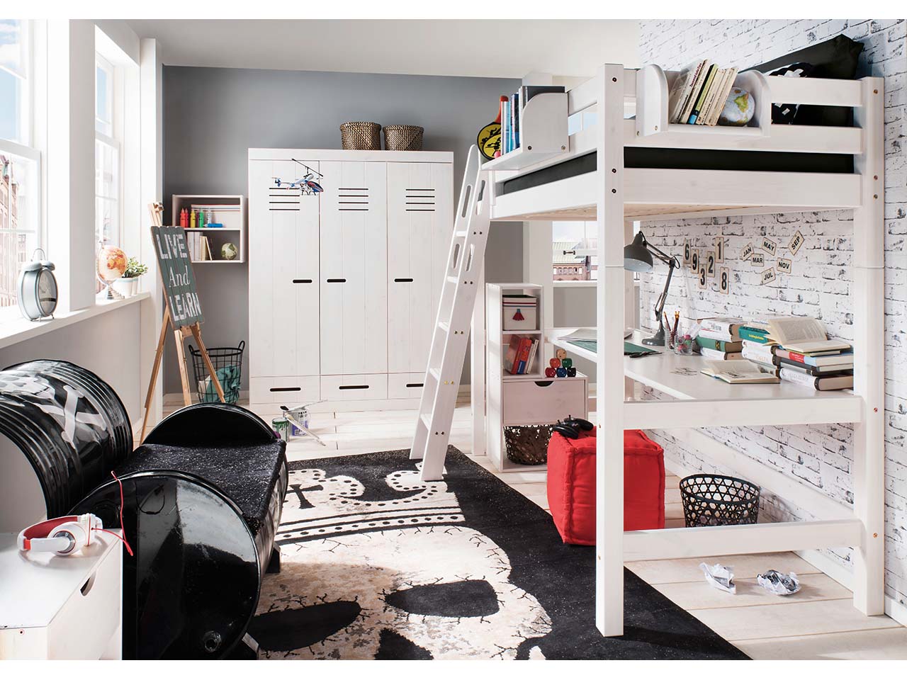 Hochbett "Infanskids" hoch, Leiter schräg