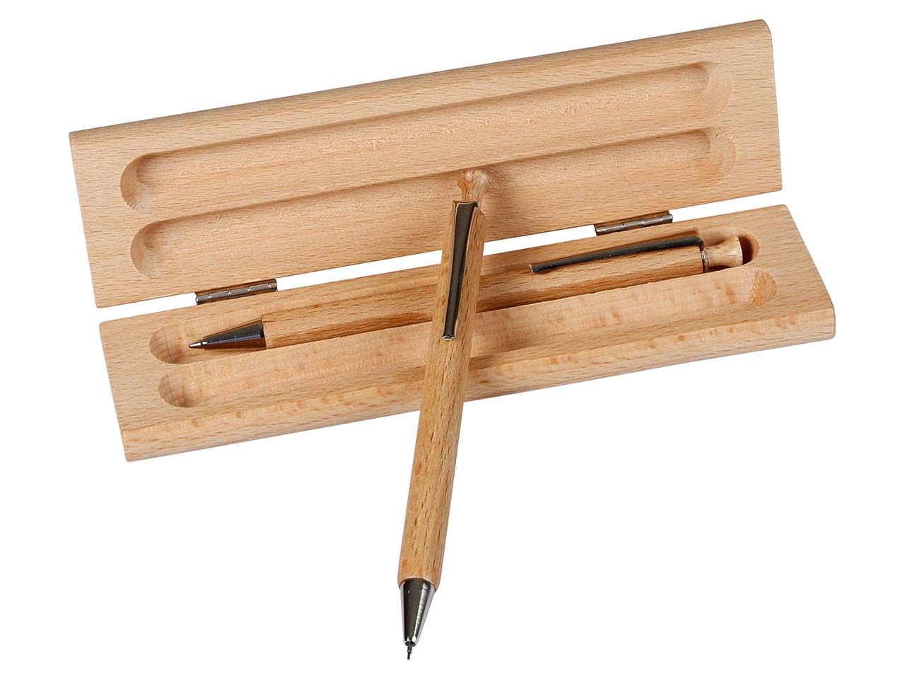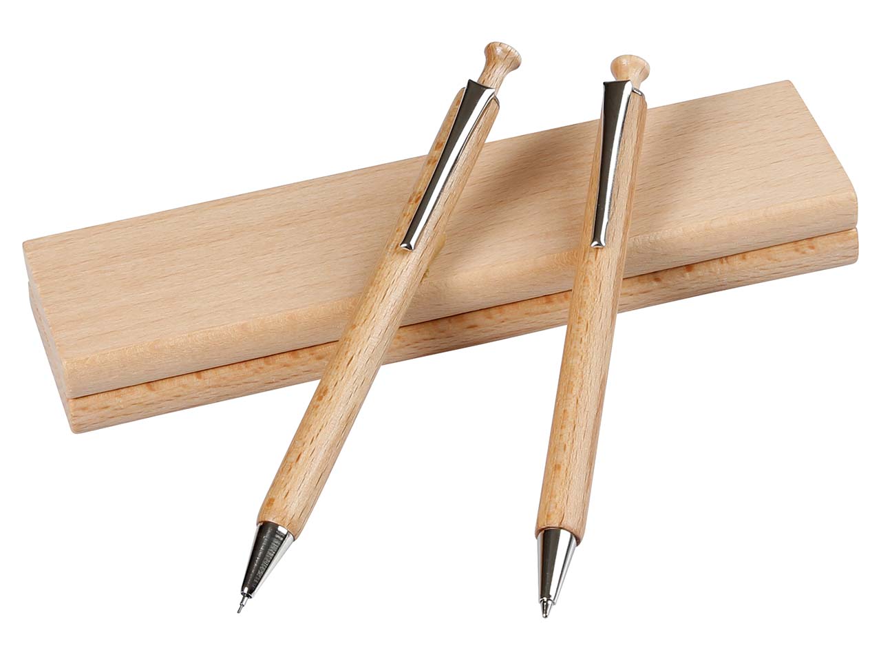 Schreibset "Buche natur" eckig mit Bleistift und Kugelschreiber