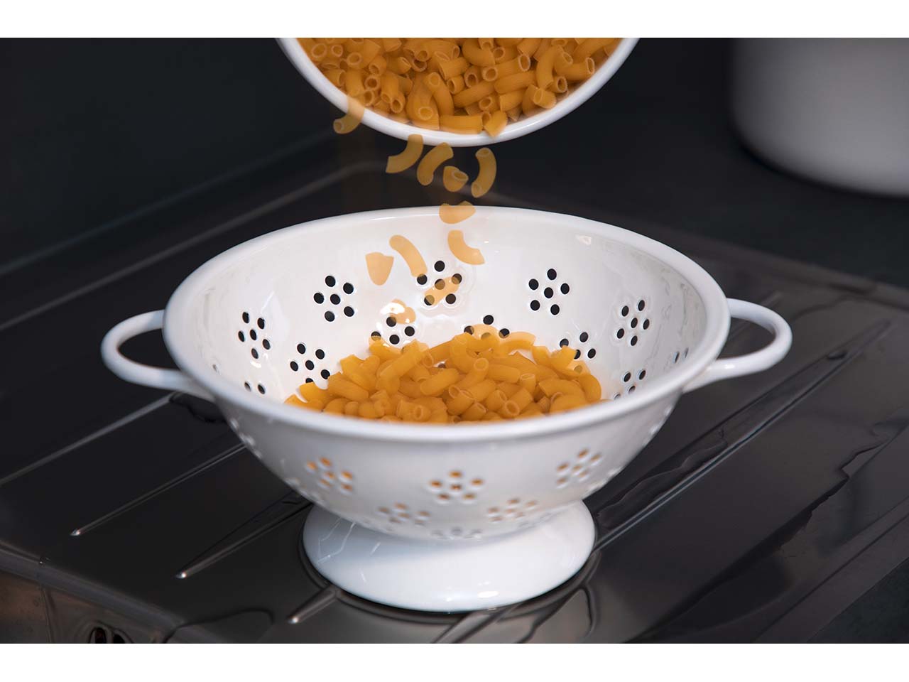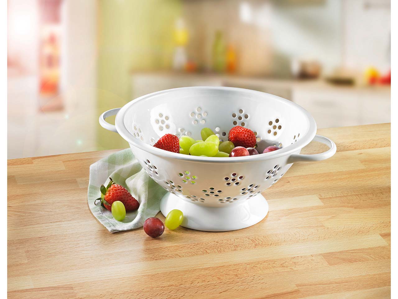 Knackiger Salat, frisches, saftiges Obst und Gemüse passen perfekt zu dem hochwertigen Honey Ware Abtropfsieb. Das Emailmaterial ist geschmacksneutral, schnitt- und kratzfest und fruchtsäurebeständig. Standfestigkeit erhält das Sieb durch den Fuß an der Unterseite. Die im hübschen Muster angefertigten Löcher lassen das Wasser problemlos ablaufen. Das ansprechende Design eignet sich auch perfekt zum direkten Servieren auf dem Tisch. Das Abtropfsieb ist leicht zu reinigen und spülmaschinengeeignet.